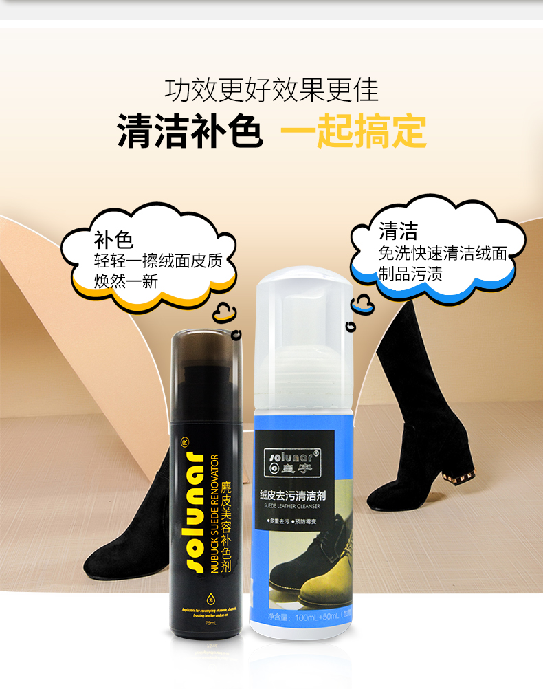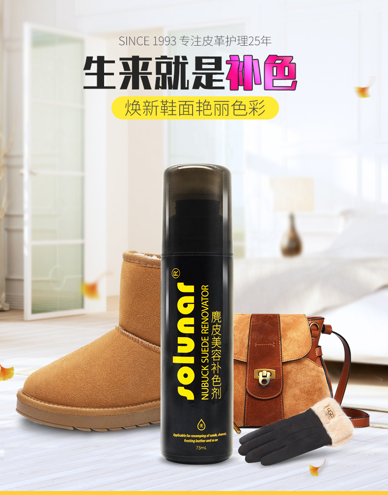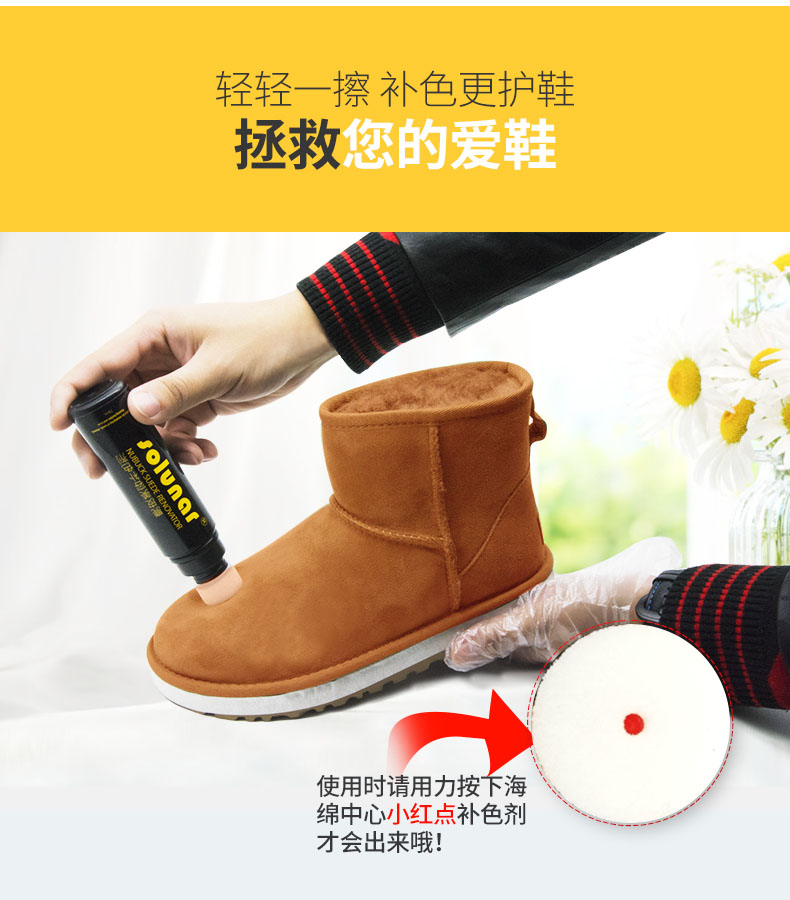 上色均匀,不褪色,着色力强,翻新更快,轻轻一擦,绒面皮质焕然一新,换新鞋面艳丽色彩!
