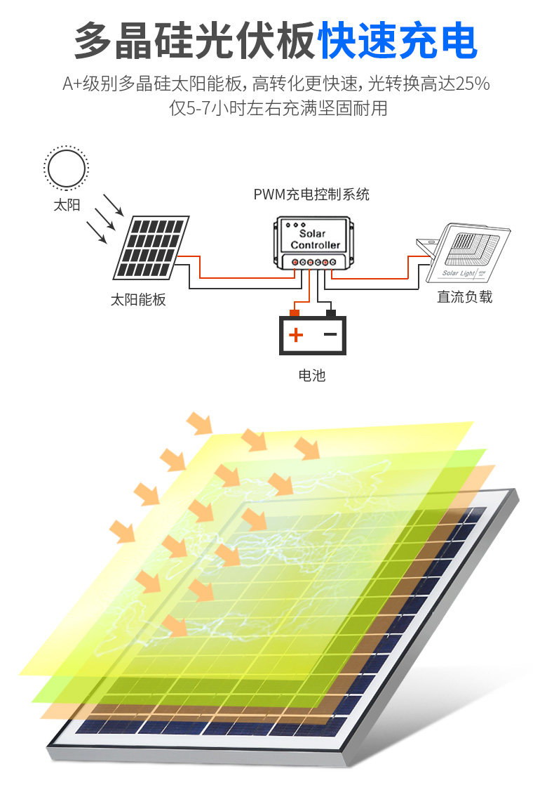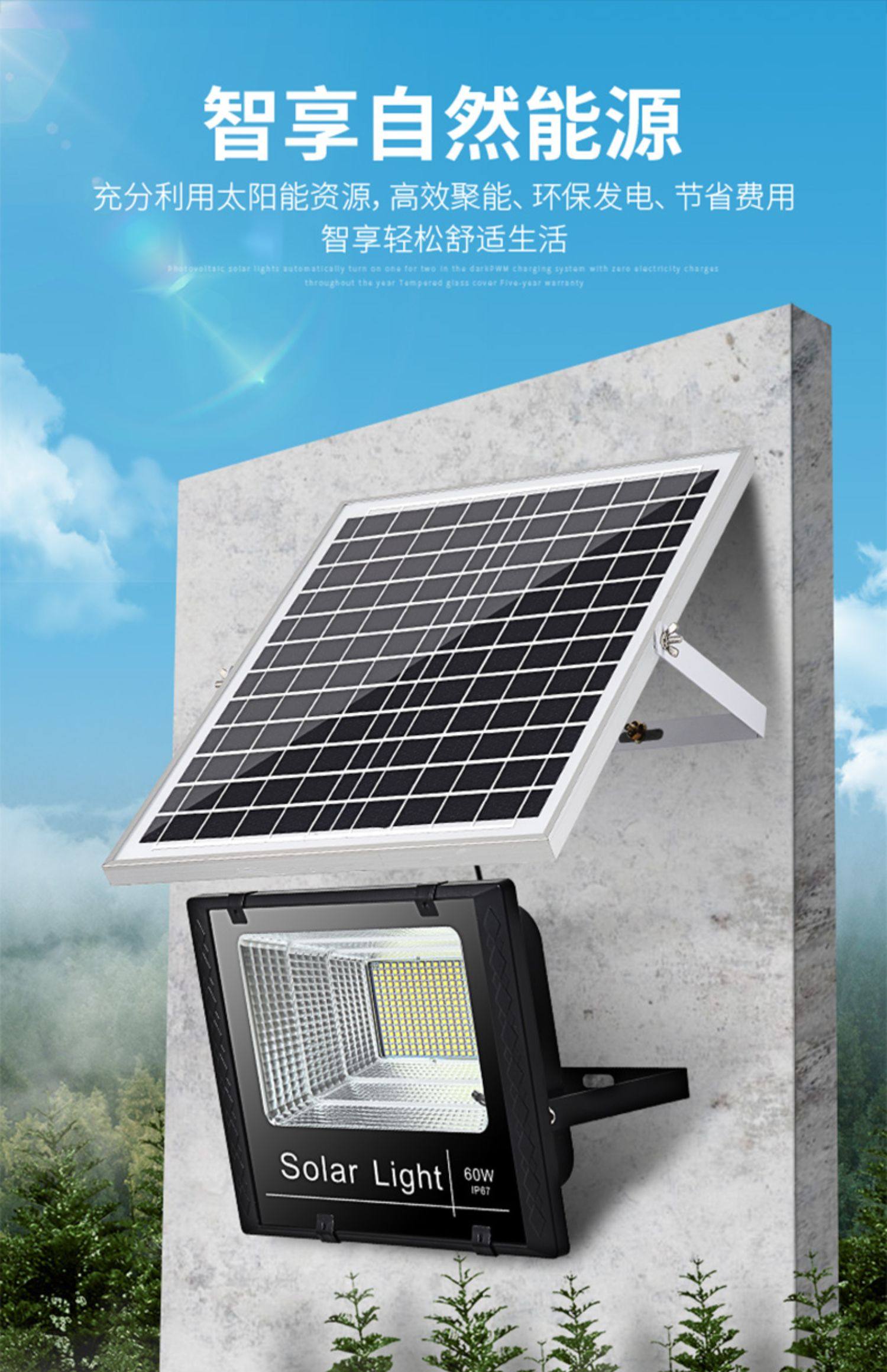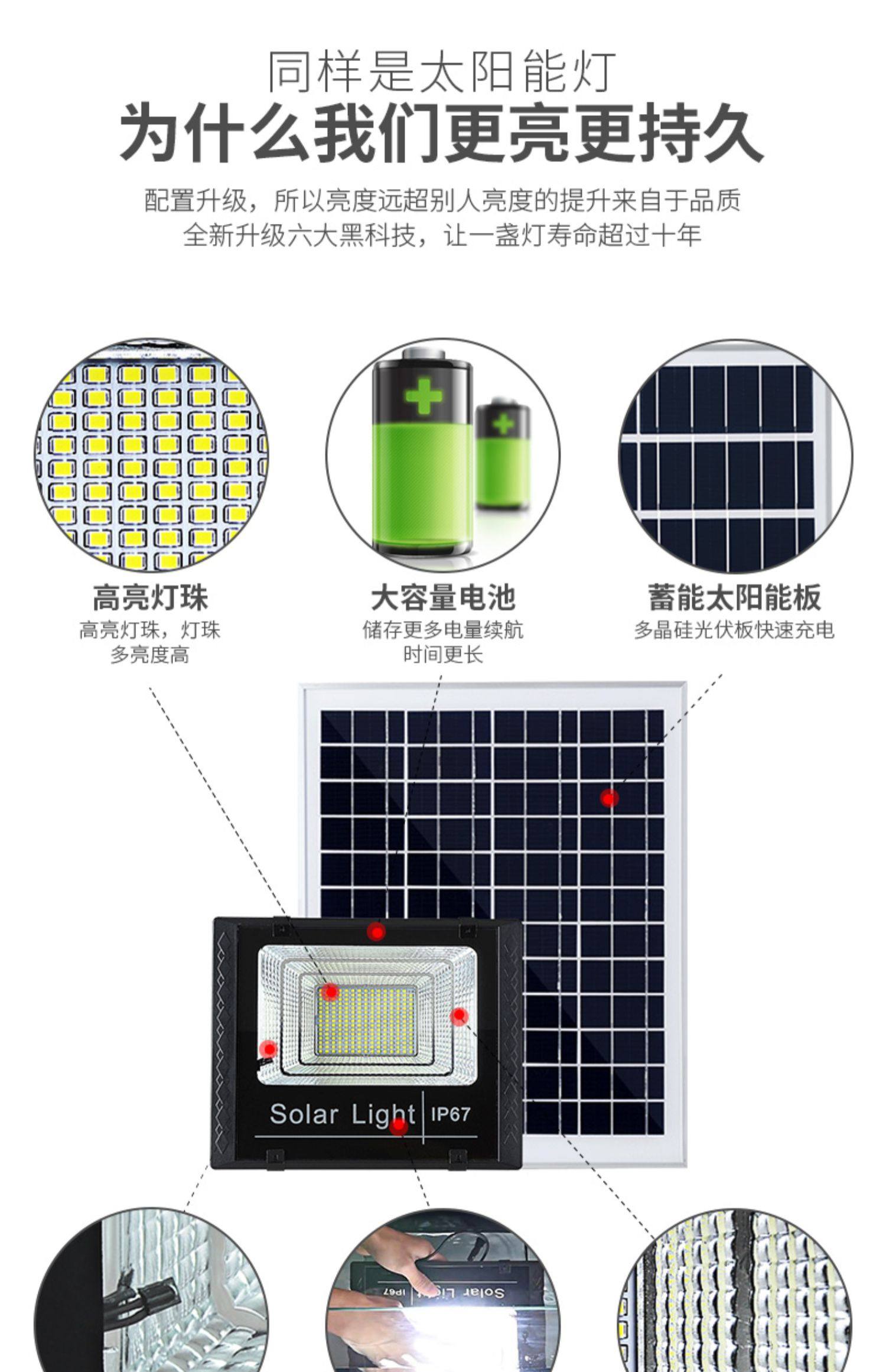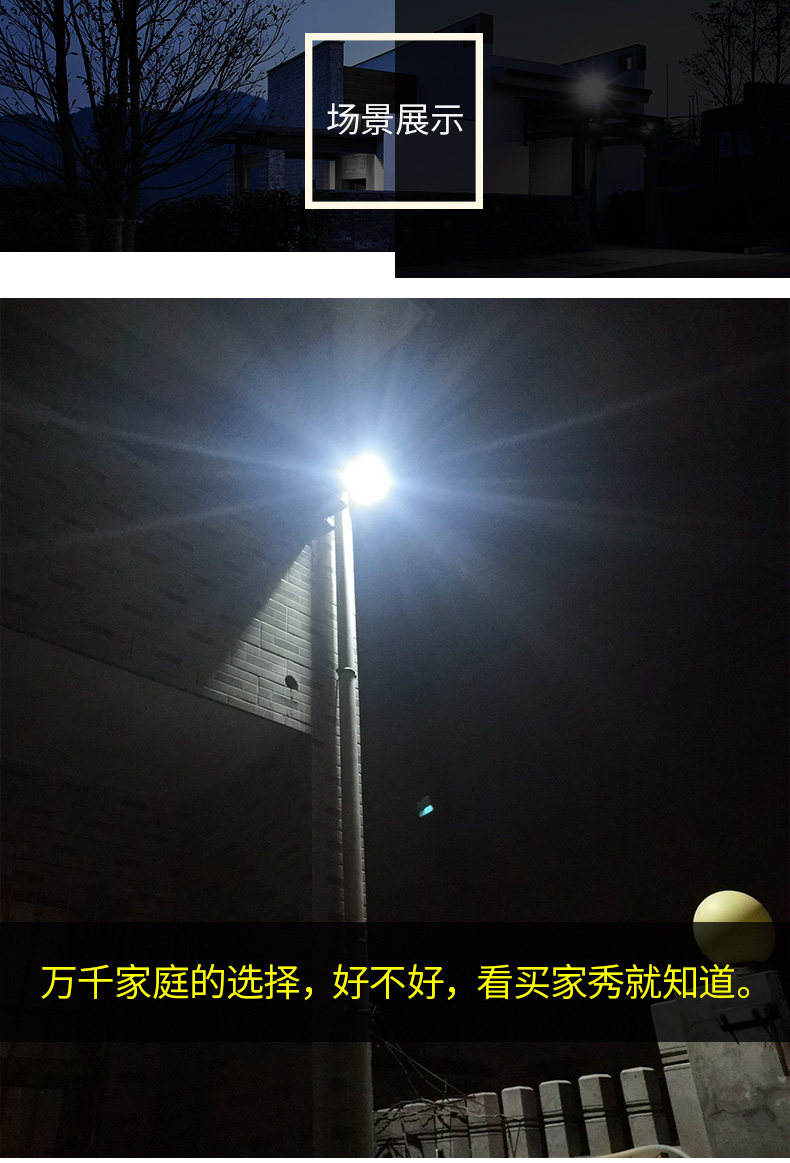 充分利用太阳能资源,高效聚能,环保发电,节省费用,智享轻松舒适生活,天黑自动亮灯,不惧怕雷雨天,不影响内部性能!
