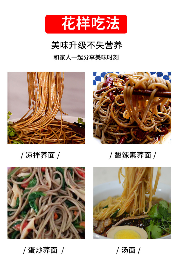荞麦面低脂肪,轻生活不负重,高饱腹不易饿,科学量定,实力抗饿,轻计划无腹担,黑苦荞够营养,好身材吃出来,4种原料科学配比,科学分束合理控制饮食~