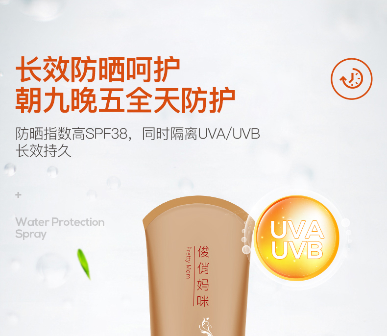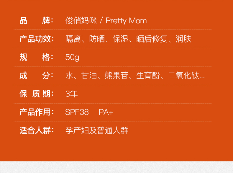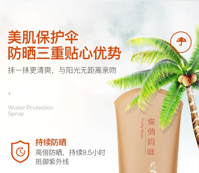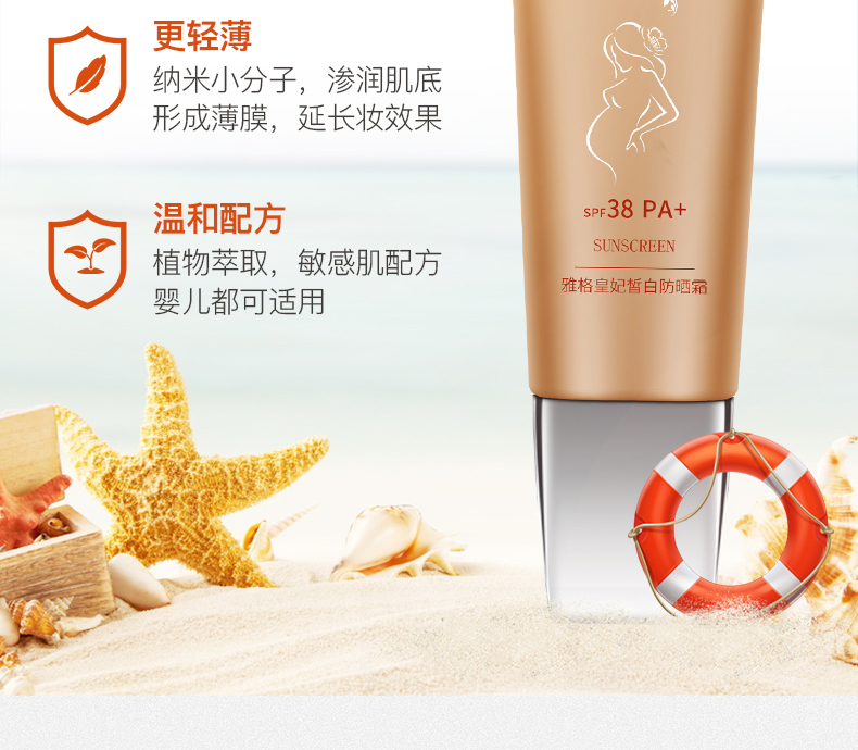 今日推荐:孕期防晒,多效倍护防晒霜,纳米屏障,抵御紫外线,植萃修护,呵护娇嫩肌,高倍防晒,无惧UV光线!孕肌娇弱,防晒勿小觑,孕期防晒就选俊俏妈咪!