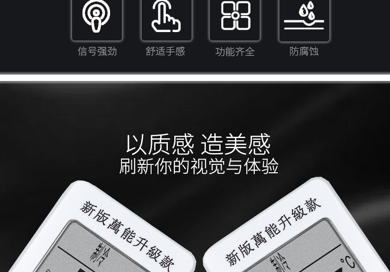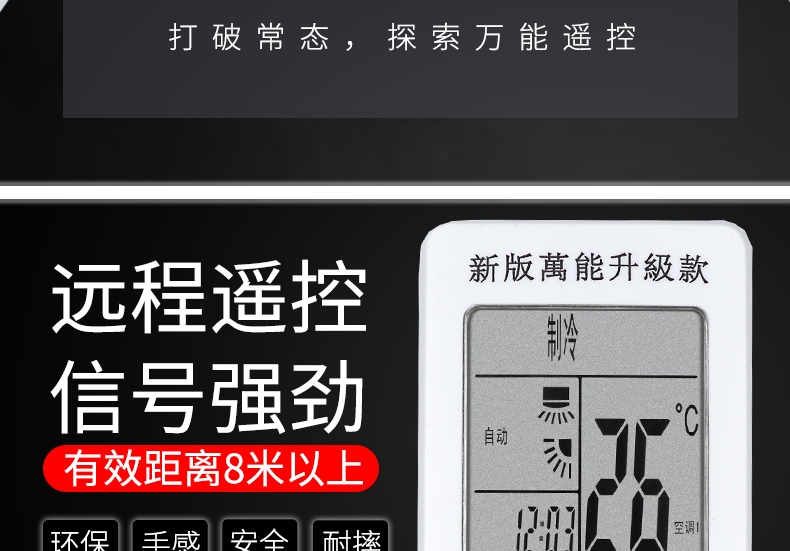 天猫品质,无需设置,直接使用,反应灵敏,操作简单,全新质感外观,细腻舒适手感,远距信号强劲。可以尽享清爽哦~一键设计,老人小孩都会用,闪电发货