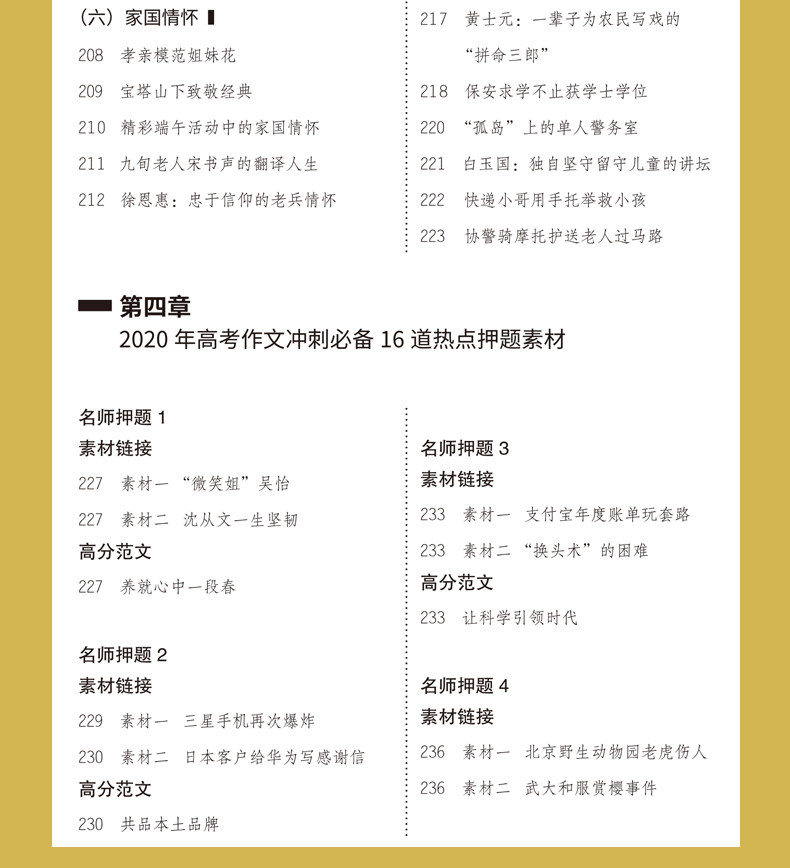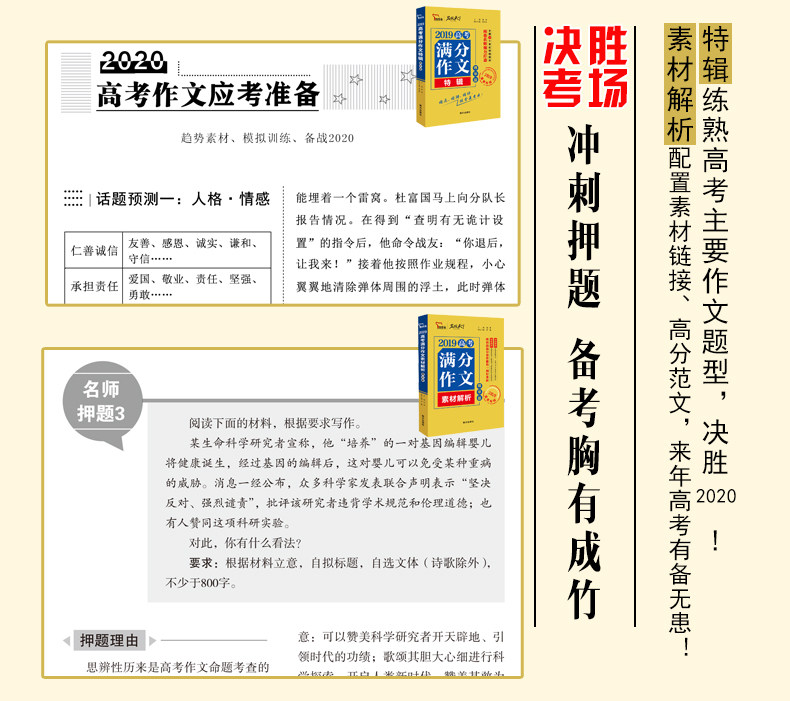 冲刺备考,祝你2020年高考加油,精选历年高考优秀作文,让考生去模仿写作的必备书!名师编写推荐,萃取5年精华,解读高考作文核心,筛选热点素材,一书尽拥高分作文,真正做到即学即用~