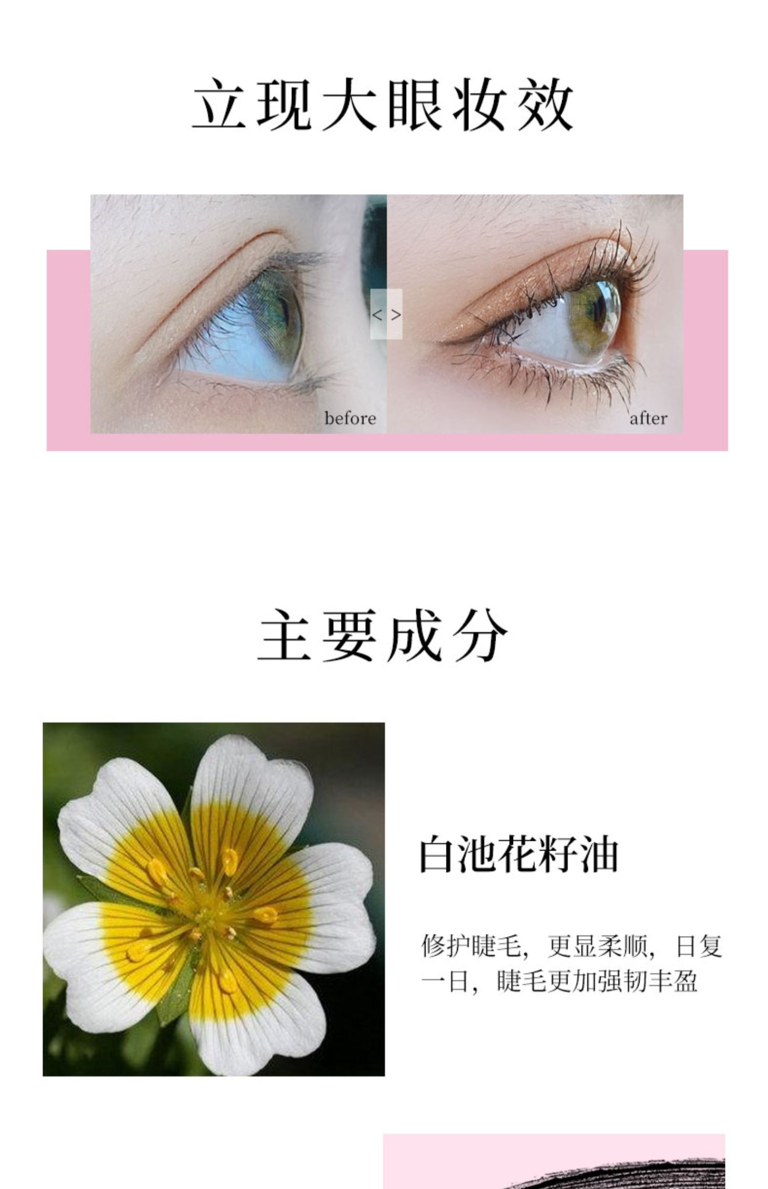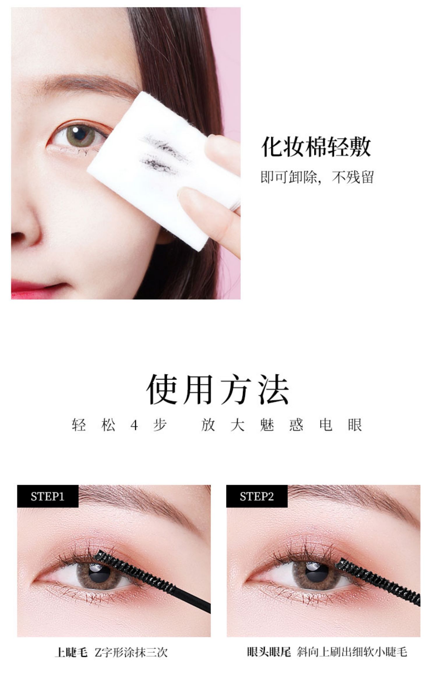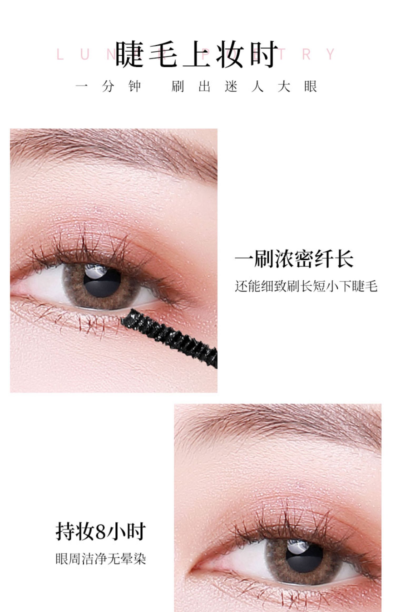 精细刷头,纤长美睫,持妆不晕染,打造纤长睫毛,一刷浓密,卷翘双眼,眼睛像星光一样灵动,大眼绽放,展现迷人双眼!