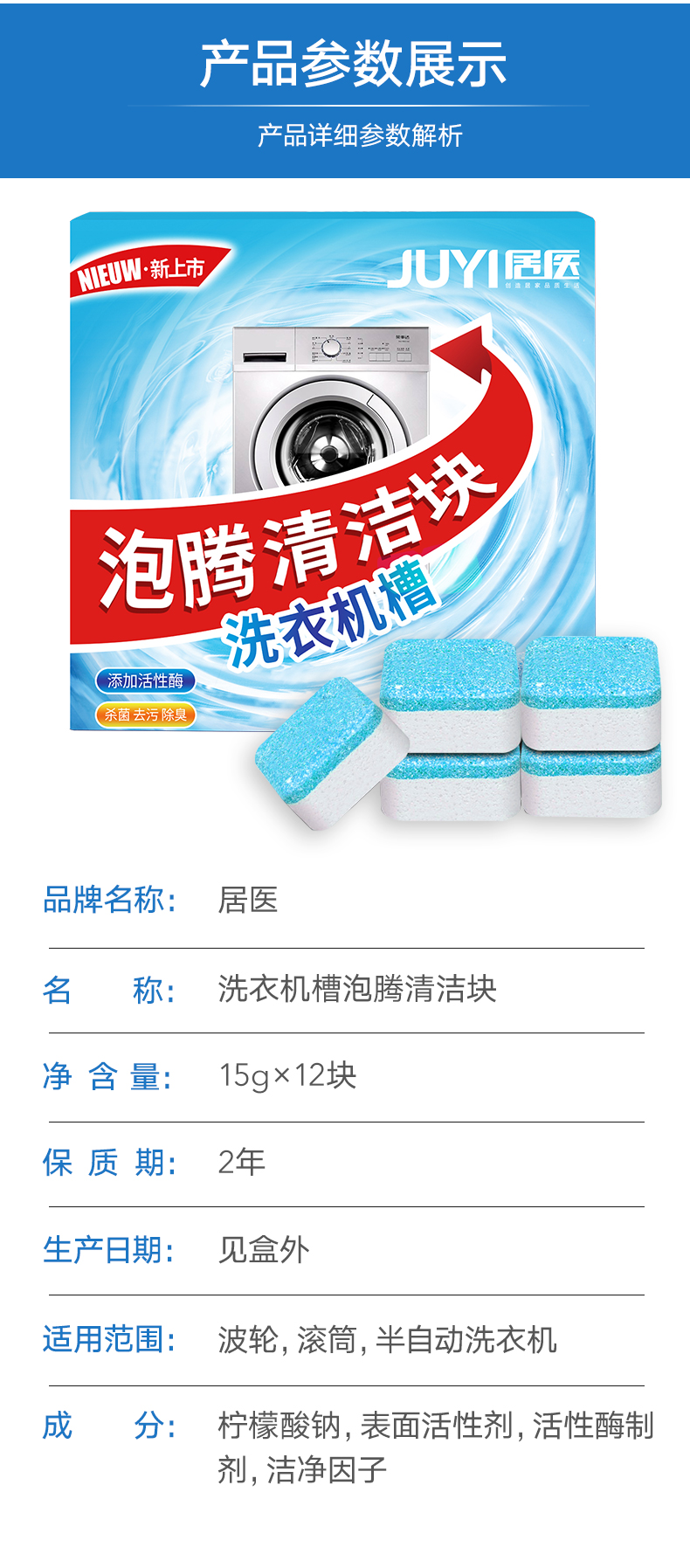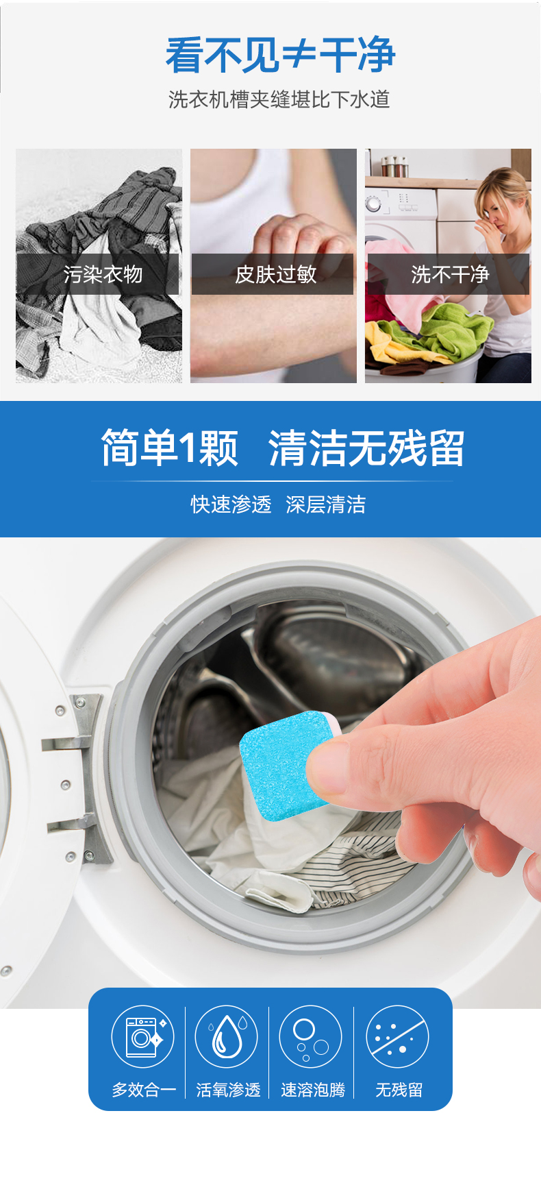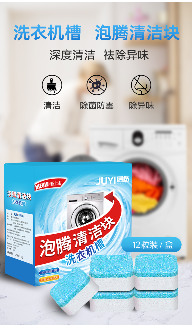 【超值12粒装,买2盒送1盒】洗衣机泡腾清洁片,不仅能清洁还能杀菌消毒,杀菌高达99%。买1次可以用1年,颗粒浓缩,轻松瓦解洗衣机槽的顽固污渍!