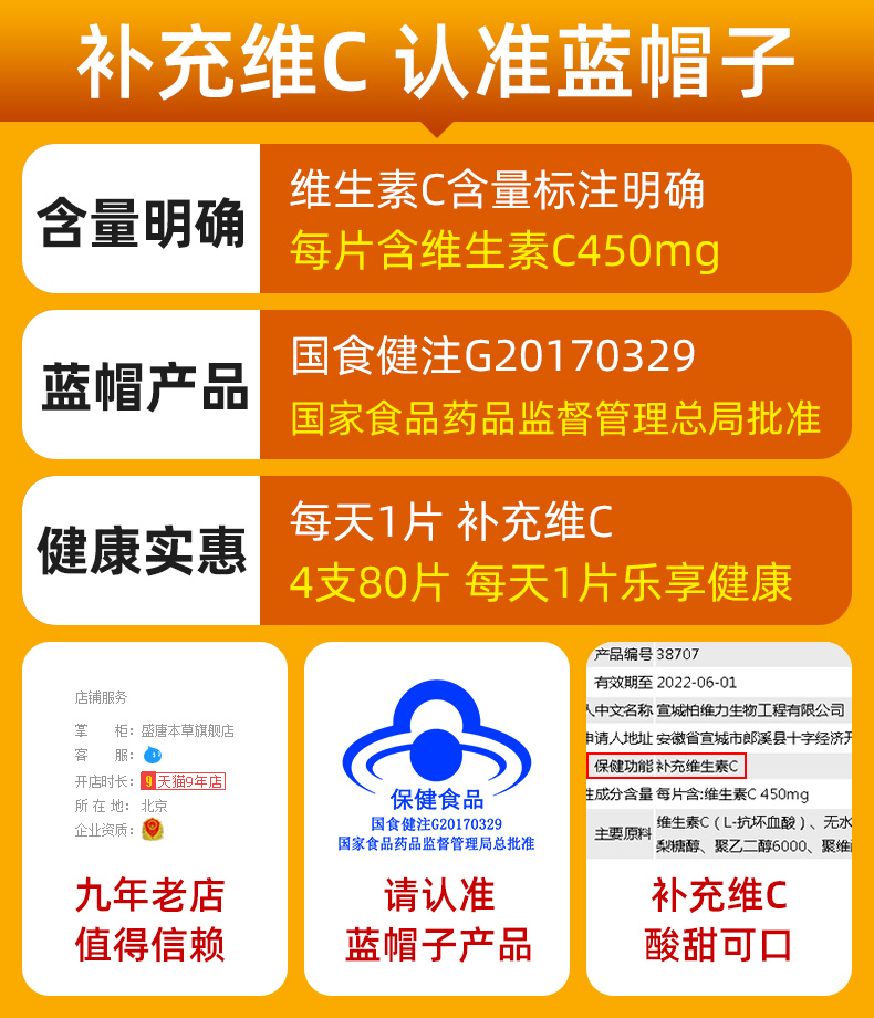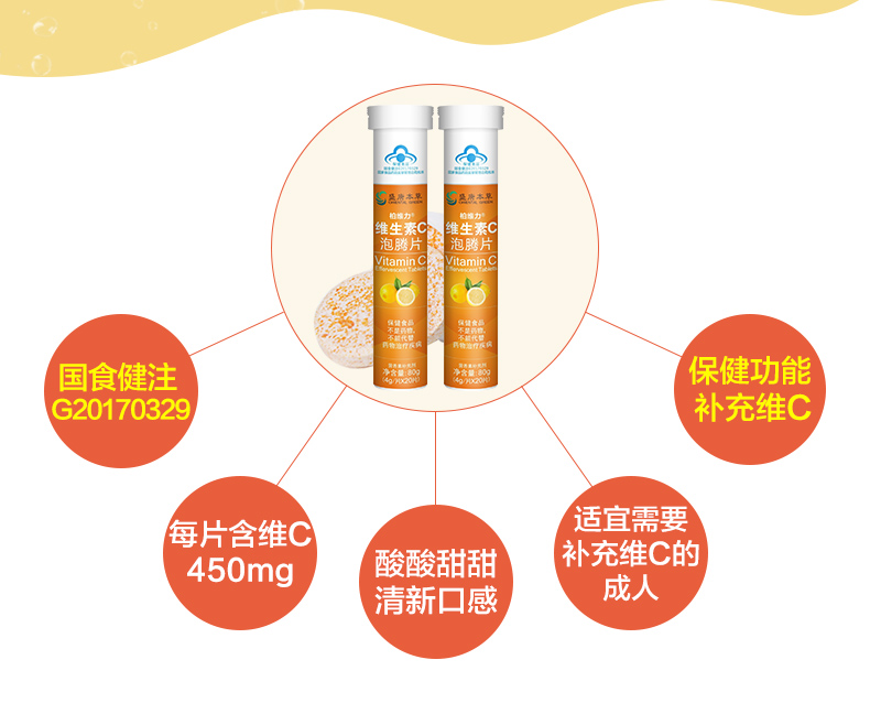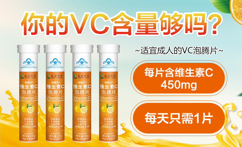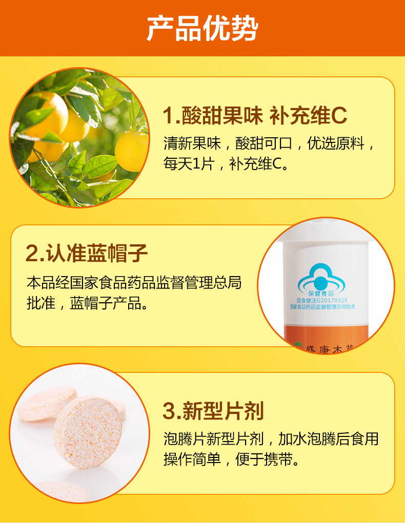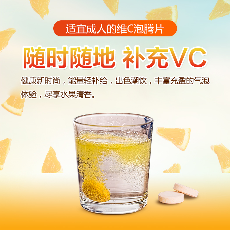 适宜成人的维生素C泡腾片,蓝帽子产品,随时随地,补充VC,每片含维C450mg,酸酸甜甜清新口感,尽享水果清香,每天一片,全家都爱喝【赠运费险】