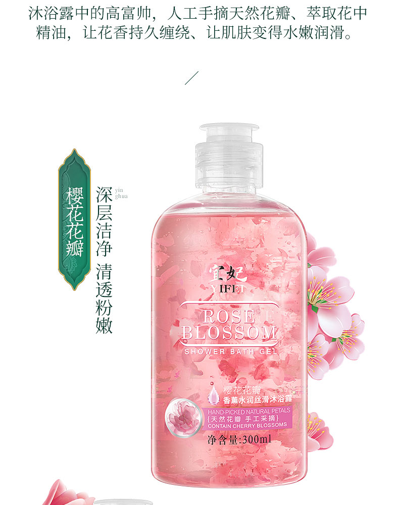 今日推荐:宜妃樱花花瓣沐浴露男女士香体持久留香香氛沐浴乳液滋润保湿补水,欢迎来到花的海洋,让肌肤来场前所未有的香氛花瓣舞会