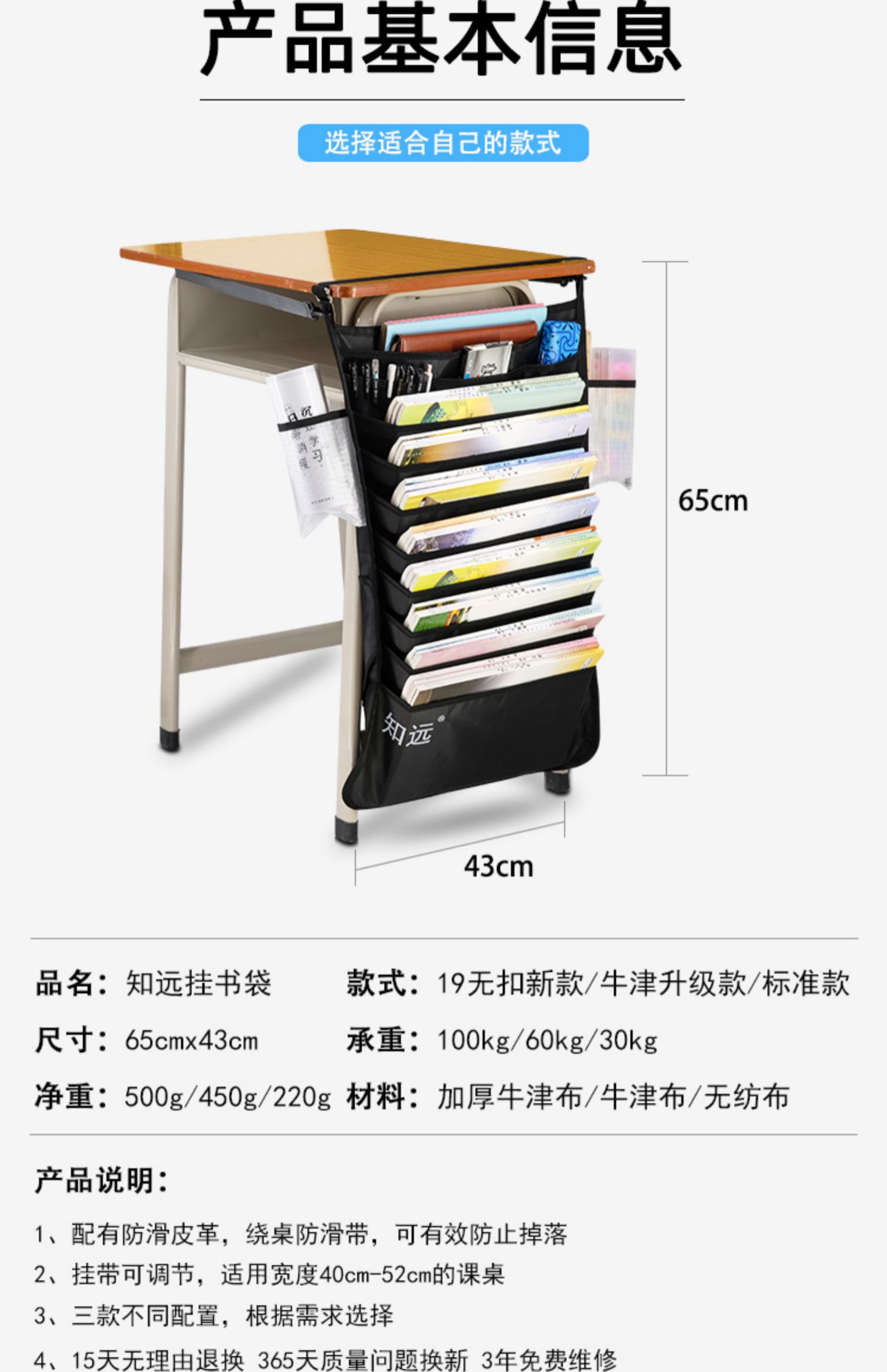 马上开学!必备的神器来啦!多功能桌边收纳袋,一下多放二十几本书都没问题!课桌再也不乱了!关键还好看!挂上收纳书袋,你就是全班最靓的仔