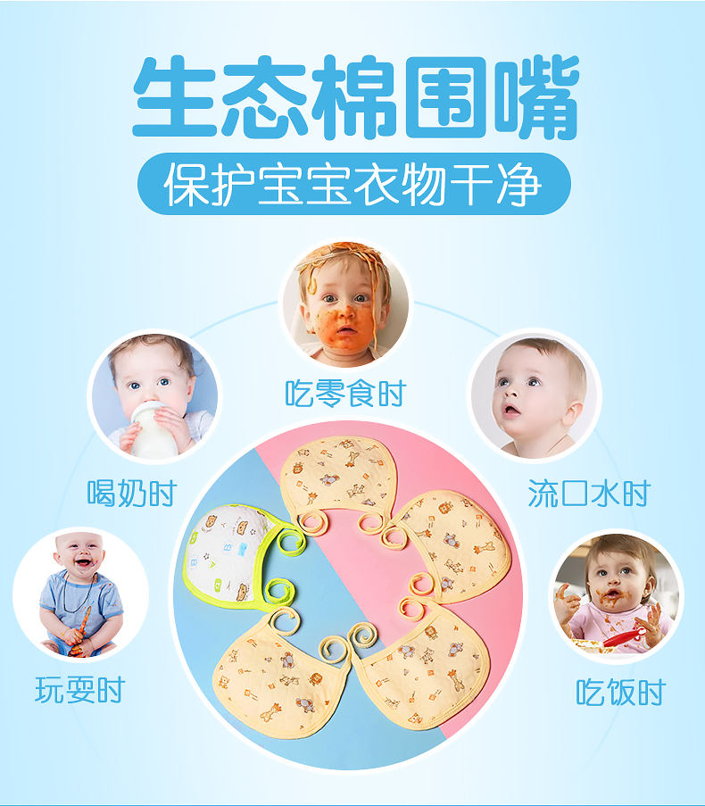超值5条秒杀!【第2件半价】纯棉围兜,不含荧光剂,放心囤~采用超柔吸水棉纱,不起球,不掉屑,吸水速干不渗透,兜住宝宝的口水!