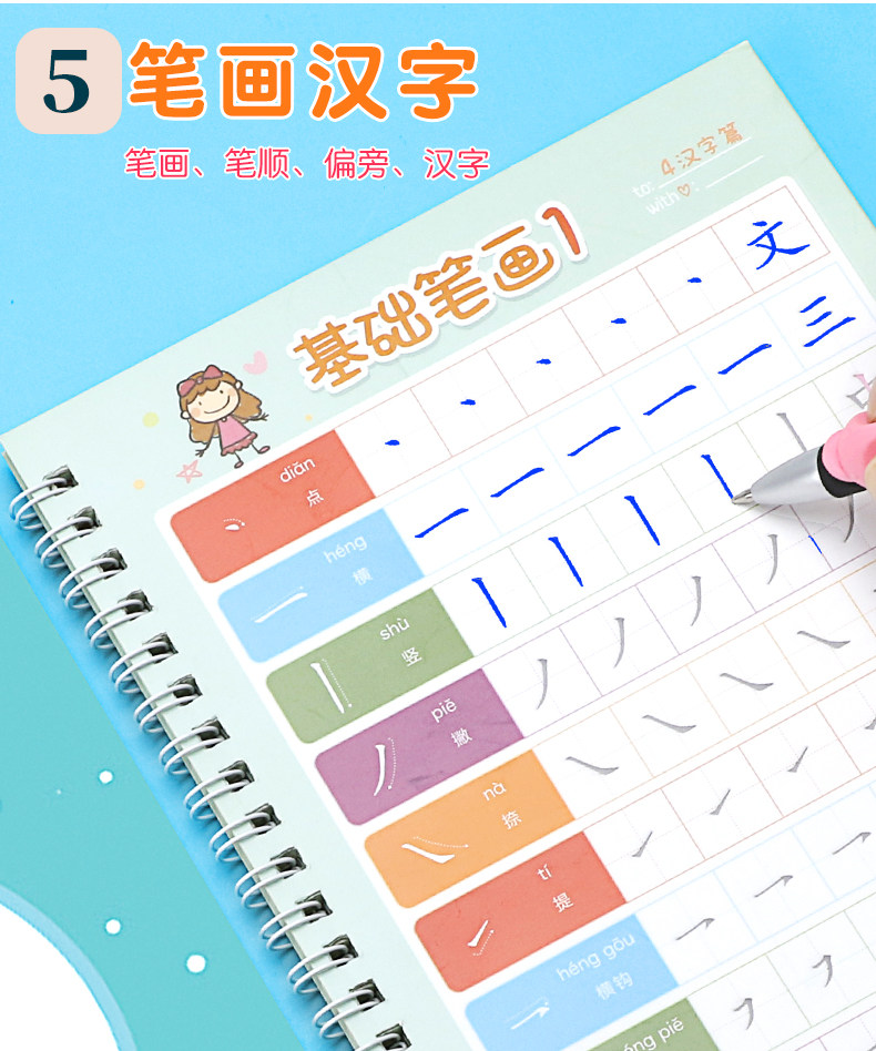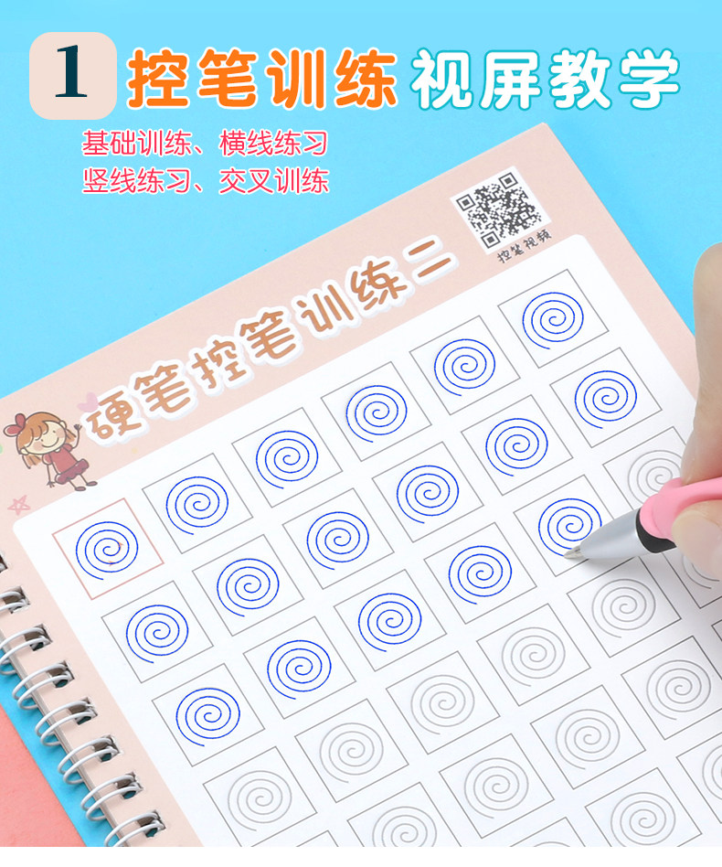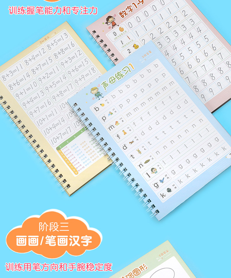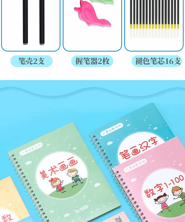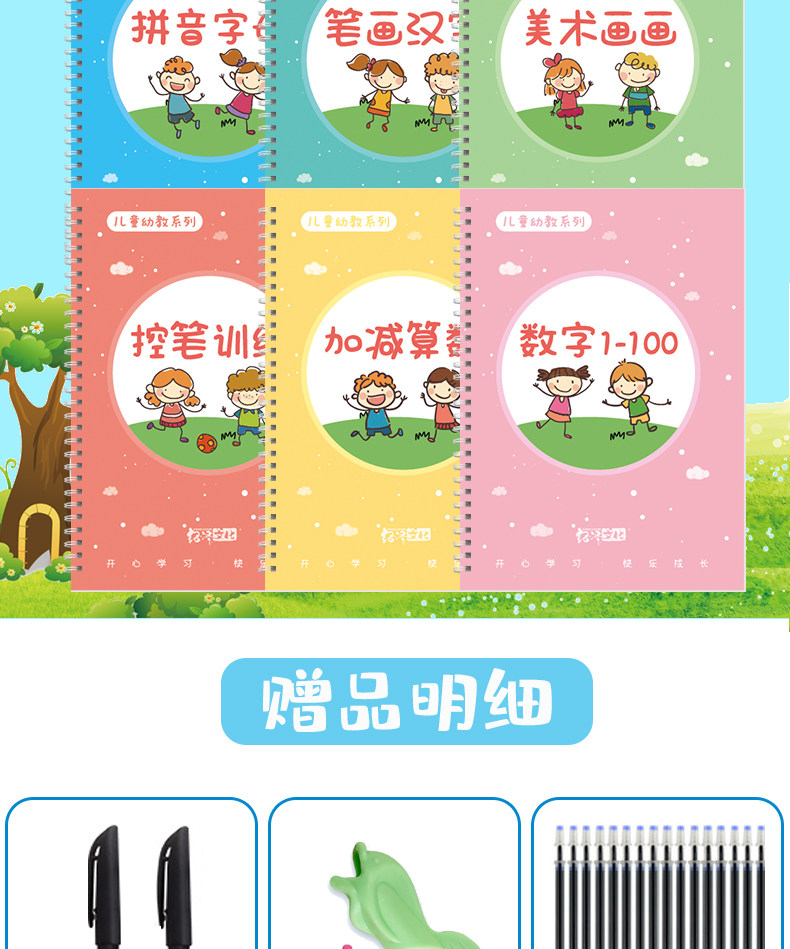 【宝妈回馈礼】宝宝幼儿园训练凹槽练字贴,凹槽练字帖从小自然好习惯,写出工整又好看的文字只需5.8元,儿童握笔描红1本+1支笔+握笔器+8支笔芯!
