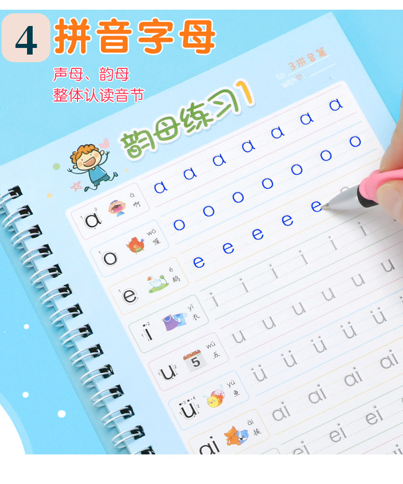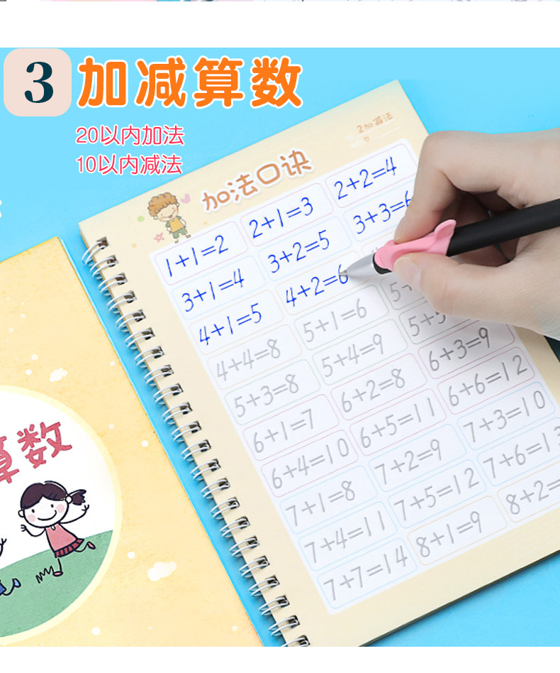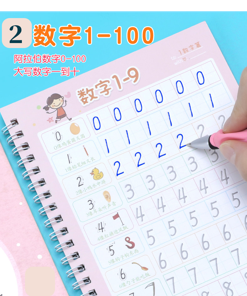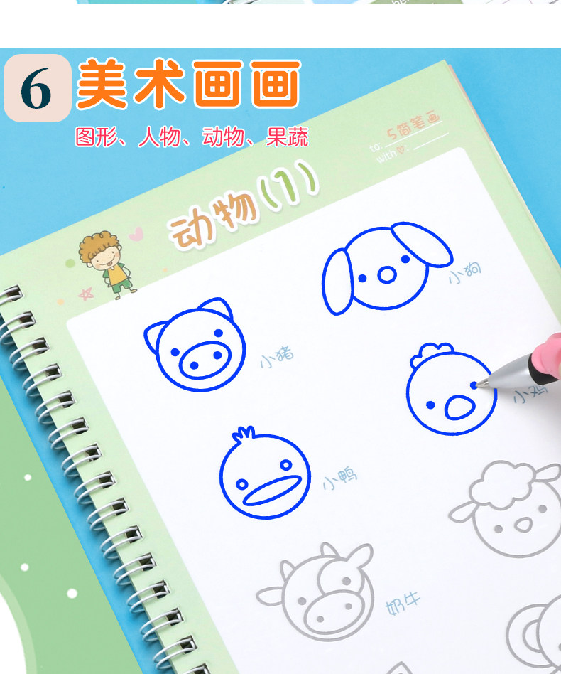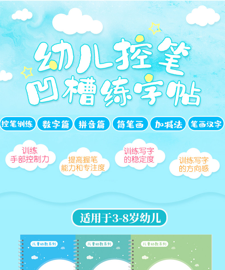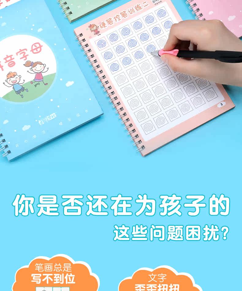 【宝妈回馈礼】宝宝幼儿园训练凹槽练字贴,凹槽练字帖从小自然好习惯,写出工整又好看的文字只需5.8元,儿童握笔描红1本+1支笔+握笔器+8支笔芯!