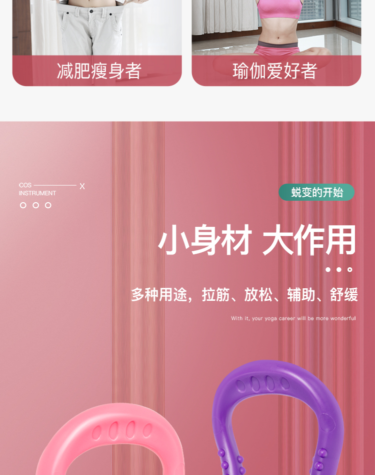 瑜伽普拉提环!粉嫩少女颜色,小巧轻便旅行也能带,让你随时随地锻炼!人体工学弧线,强承重不变形,拉伸开背,辅助体式,活动仅3.9!各种塑身美体轻松做!【赠运费险】