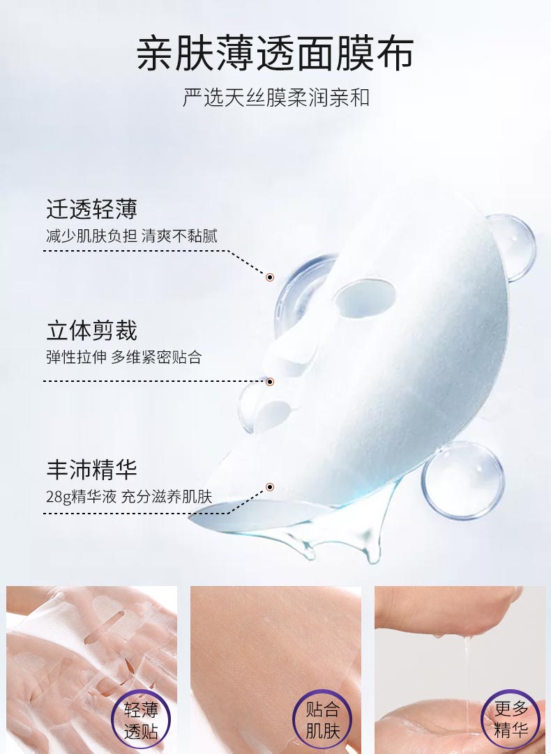 【卖点】富勒烯赋活拉丝面膜;揭秘韩国人美肤的秘密,港台明星都在用,护肤界钻石富勒烯,活化皮肤细胞,提拉弹润,紧致透亮,锁水保湿,为肌肤补充弹性活力!