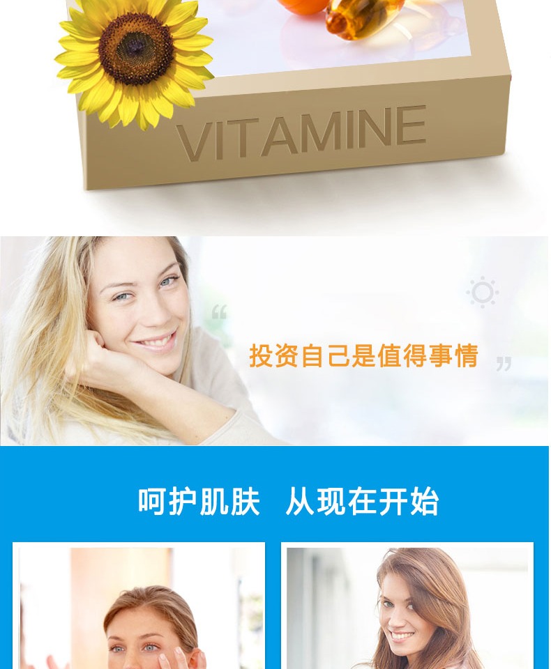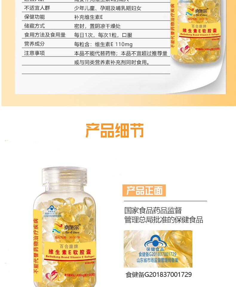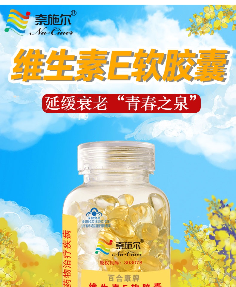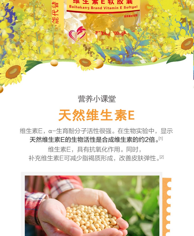 【蓝帽认证】天然维生素E软胶囊,高科技提纯,纯度高,易吸收,有效补充维生素E,强大的抗氧化作用,内服外涂,抗衰老,美丽由内而外的散发出来哟!送父母、送长辈都很不错!