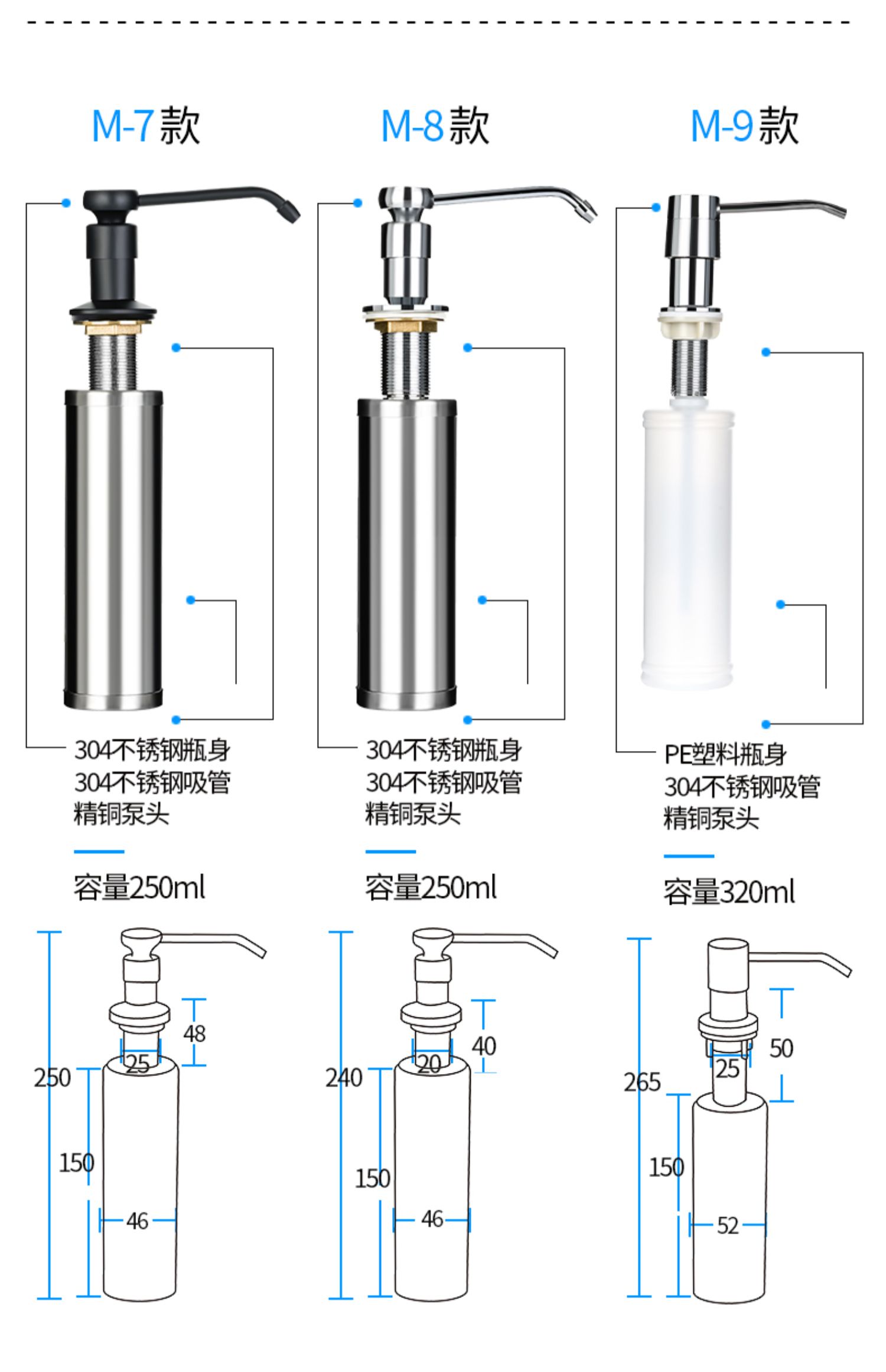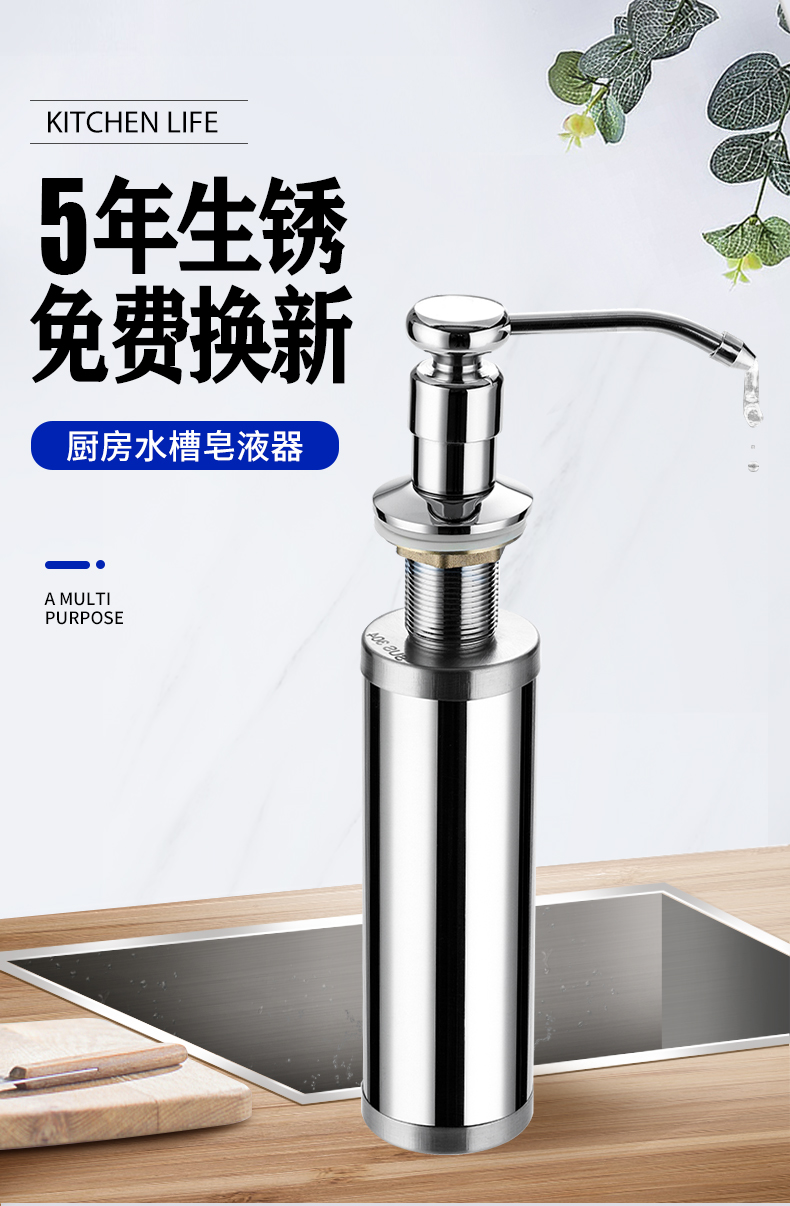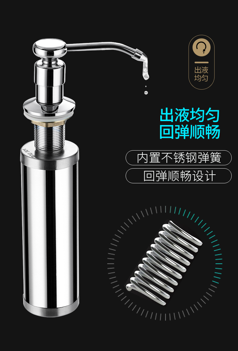 304不锈钢!多用皂液器,承重力强防水防潮,小巧经久耐用,定量出液,材质升级,寿命长,家庭酒店两用,速抢!