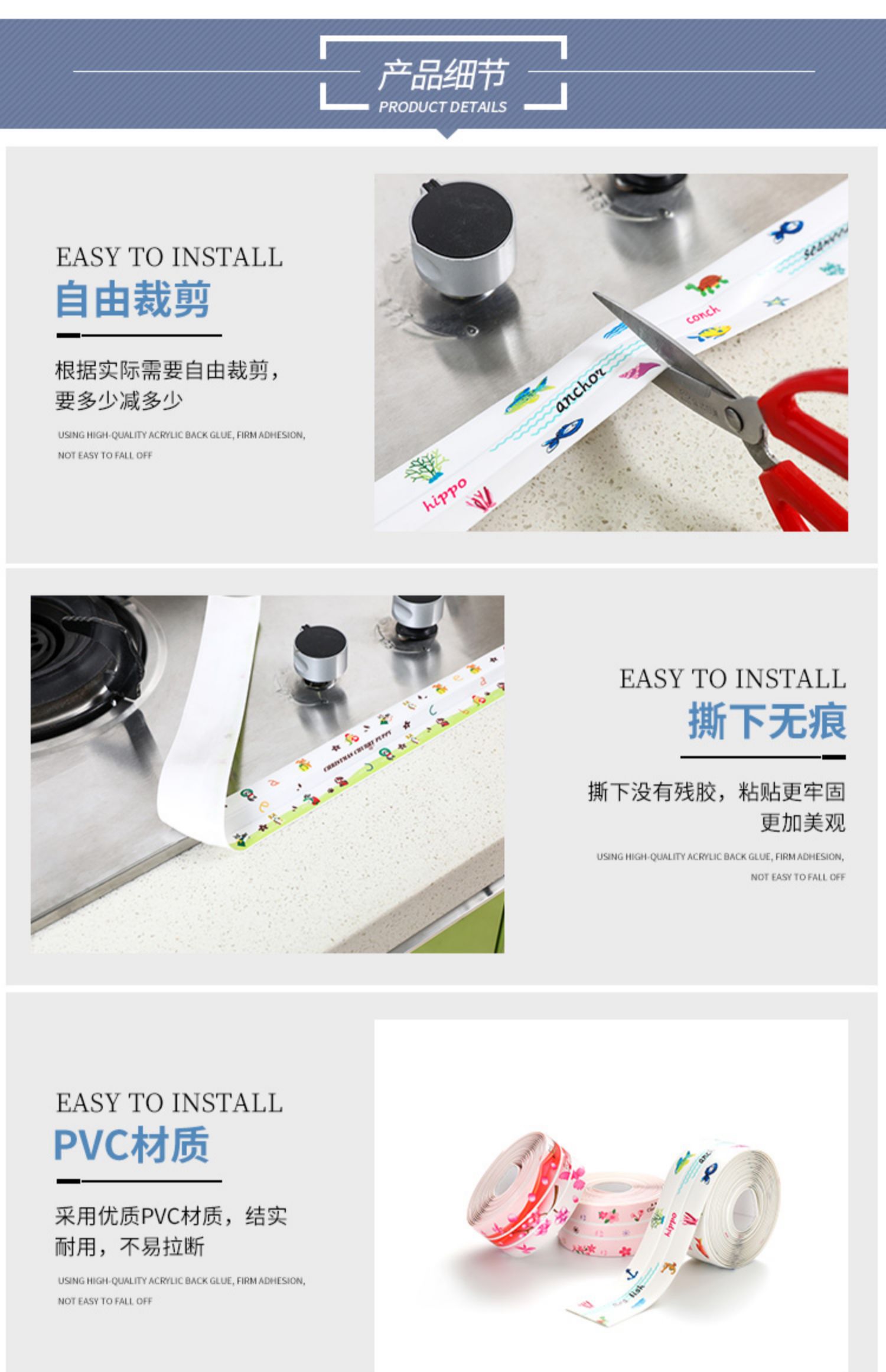 【买一送一买二发三任选】优质选材,厨房,墙角,水槽,马桶皆可使用。双折防水贴条,自由裁剪,油污一擦及净,防霉防潮,无胶痕,不落痕,无死角更卫生~爆款居家值得拥有!快来买它~
