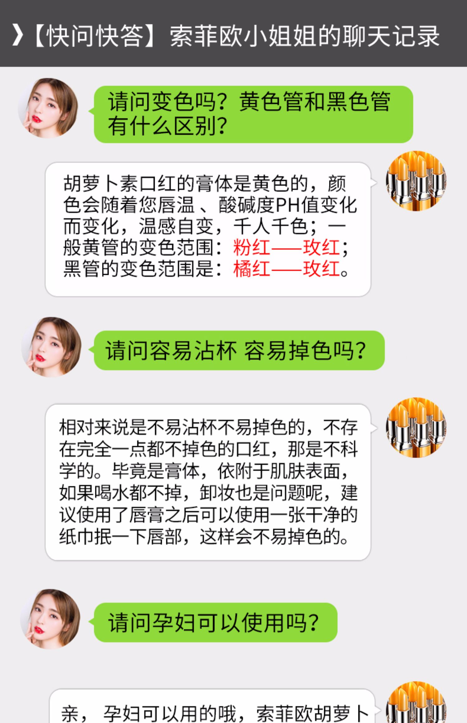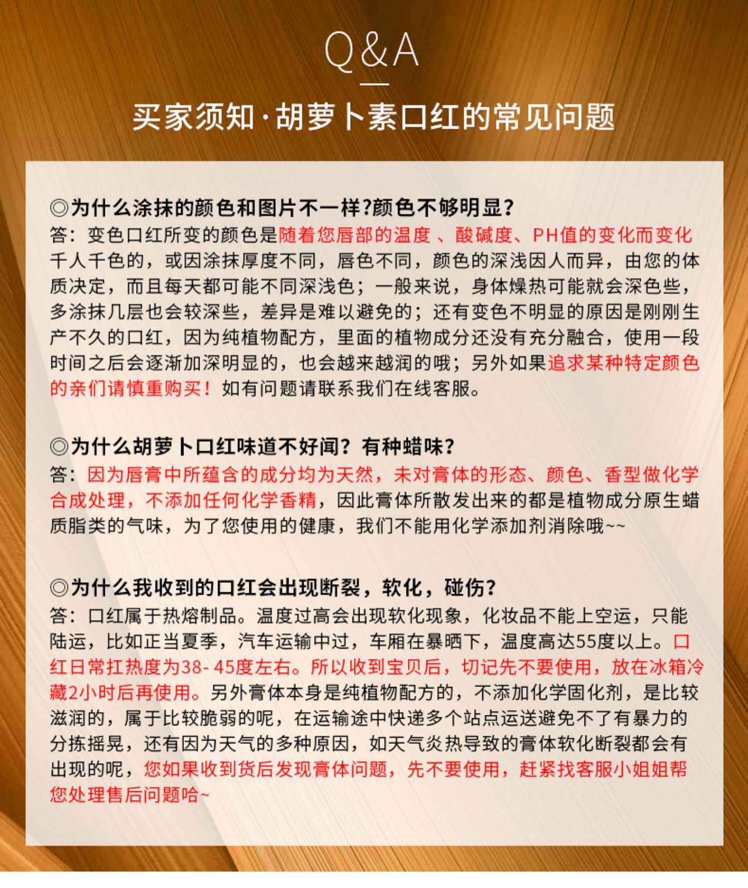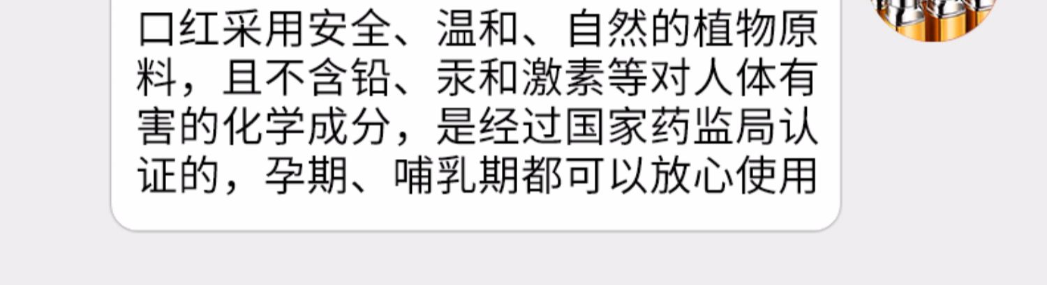 天然胡萝卜素口红,孕期可用,安全健康,温感变色,自然力缔造自然美。真正可以吃的口红!防水不脱色;持久滋润,淡化唇纹,一抹倾心;任何肤质适合
