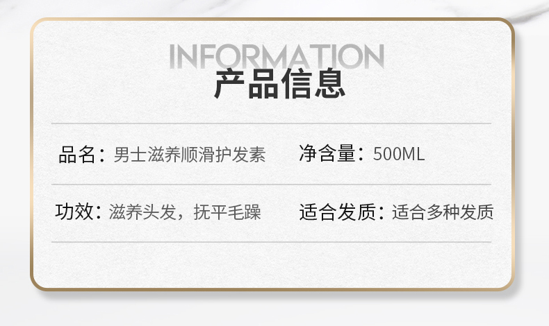 男士专用护发素500ml,香味持久留香,补水保湿,修复受损发质!顺滑烫染,修复头发干枯改善毛躁,。