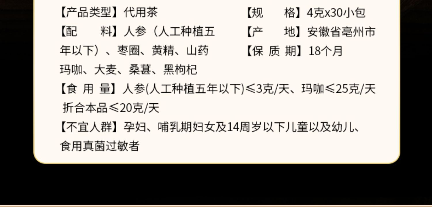 【沈家村】精选人参,玛咖,枸杞,桑葚,山药等真材实料!有效解决熬夜,气血亏损,肾虚等疾病!一冲即饮,补气养元又补肾,让你精力充沛信心满满,为你所爱,惠你所想,开启养生时光!【赠运费险】