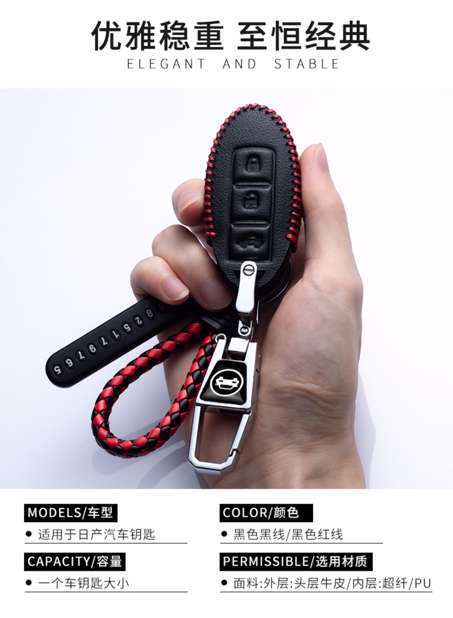 【赠运费险】日产汽车专用,真皮钥匙报,送手工编制绳、防丢号码牌。手感超好,无可挑剔。