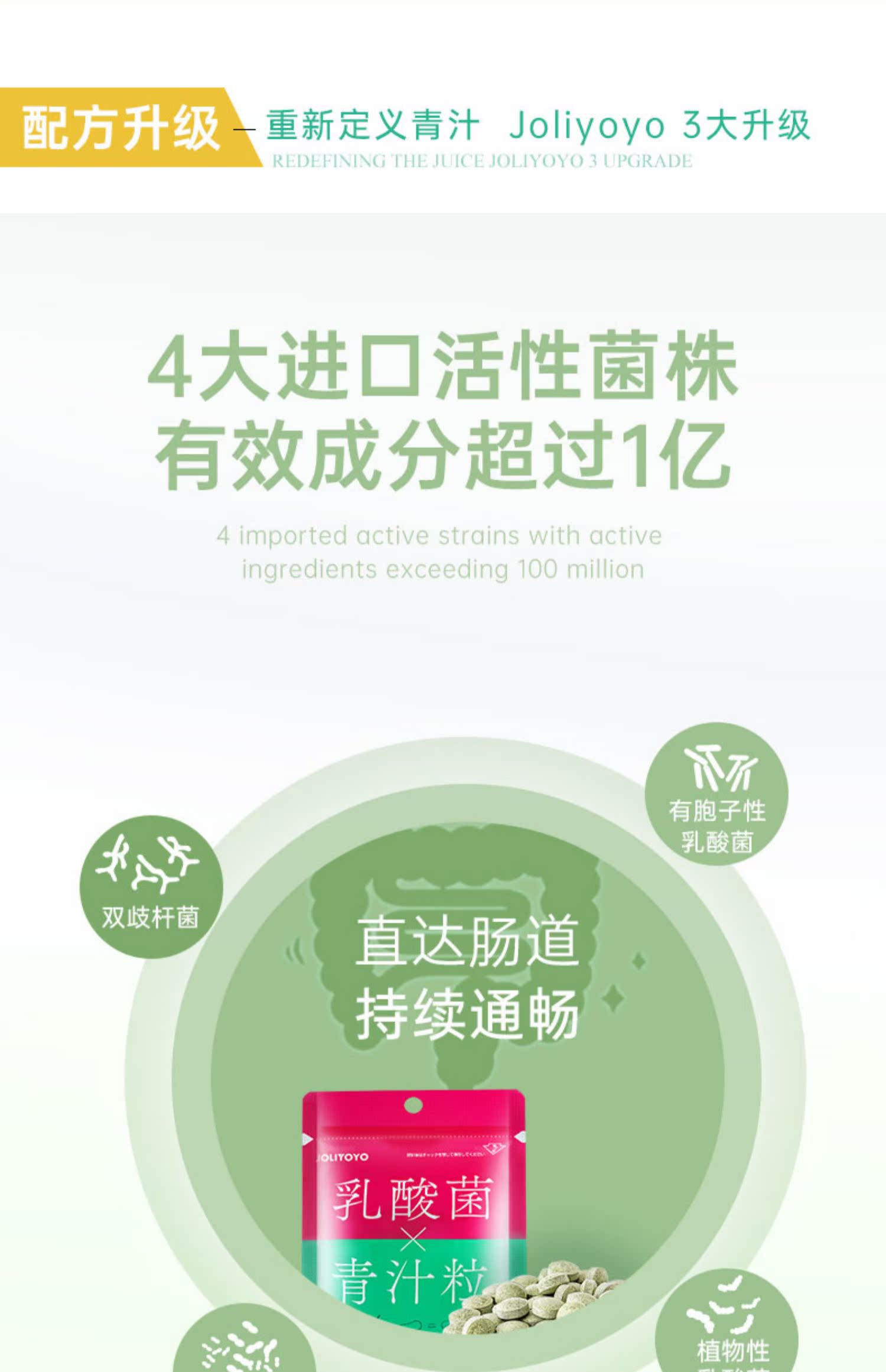 【天猫国际,日本进口】精萃浓缩颗粒设计,省去冲泡繁琐,乳酸菌+青汁,双效升级,肠道轻松,4种活性菌株,促进肠道蠕动,营养兼顾易食性,免去冲泡麻烦,成分安全,不腹泻。
