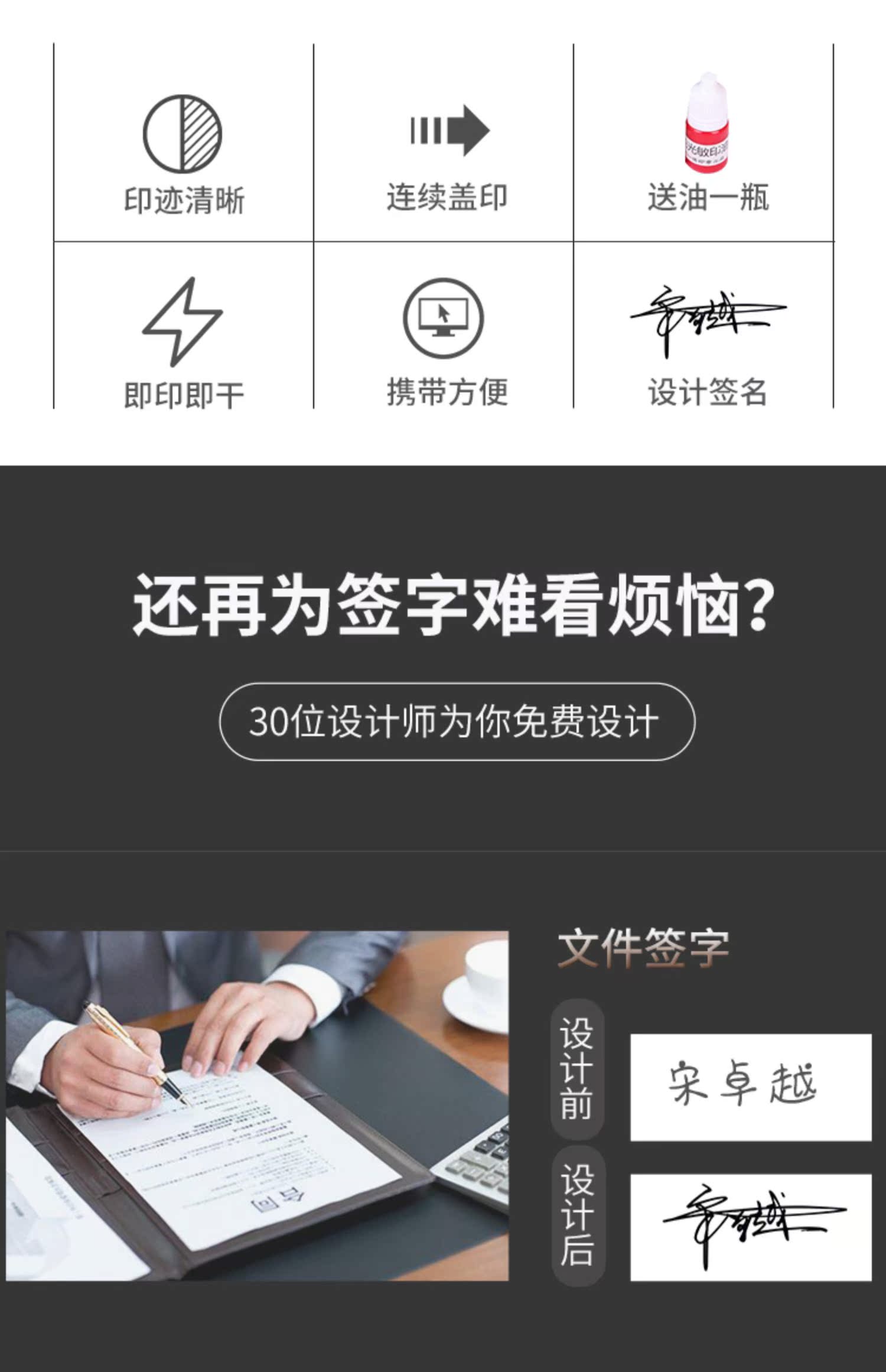 个人姓名印章手写签名章刻字个性签名,免费设计,真实笔迹,还再为了签字难看而烦恼吗?30位设计师为你免费设计,不是999次,而是1699次。劵后只要5.8元,下单即送印油一瓶!速抢