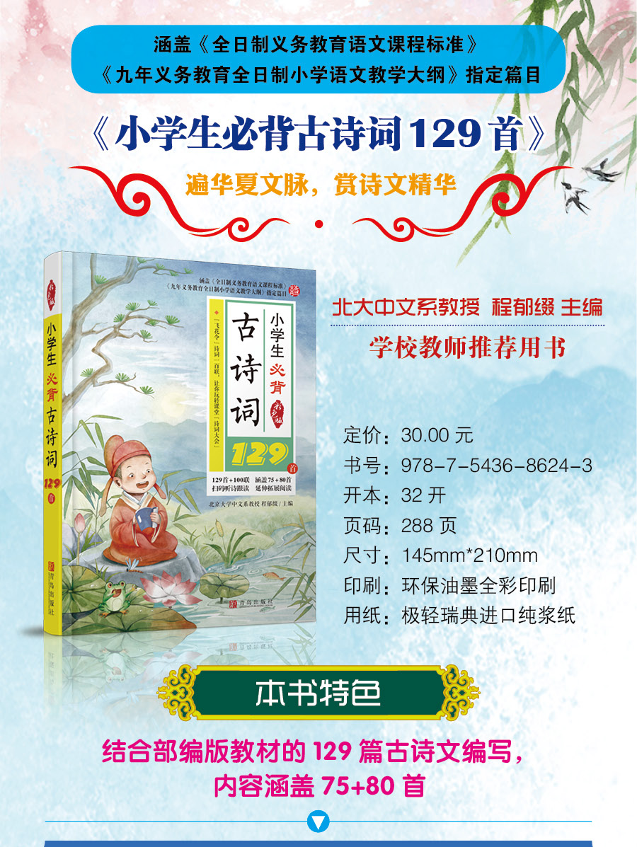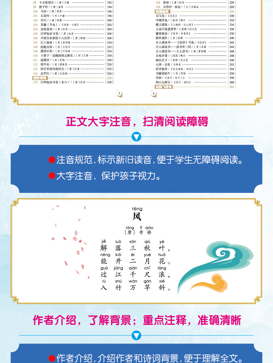 【超值秒杀】弘扬中国国学文化,教育部推荐,影响孩子一生的诵读经典!学生必备古诗词75+80首,彩图注音+赏析点评,无障碍阅读,简单易懂,感受古诗词的魅力,为学习文言文打下坚实基础。