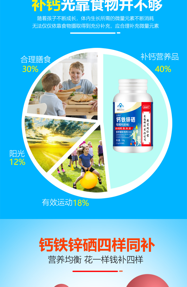 大牌同仁堂出品,钙铁锌硒同补,花一样钱补4样,聪明妈妈的选择!促进儿童骨骼生长发育,为宝宝成长护航,让宝宝更高/更强/更聪明!