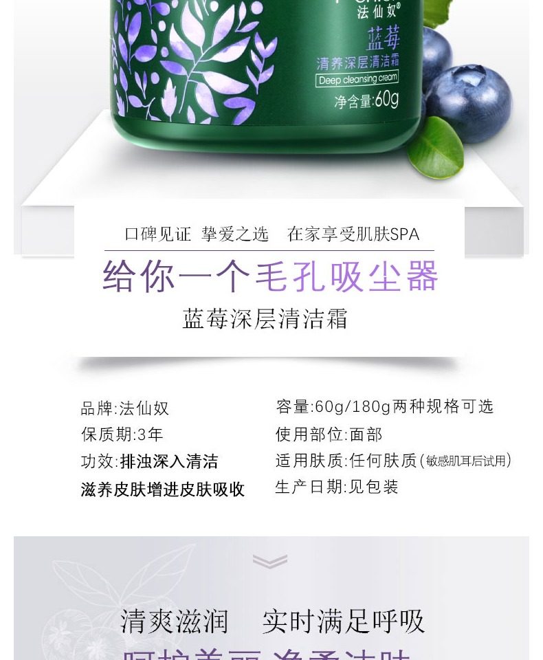 【限时29.9】【法仙奴】蓝莓清养深层清洁霜,温和不伤肤,滋养嫩滑,深层清洁,给毛孔洗个澡,导出毛孔垃圾,呵护你的肌肤,女神必备~~