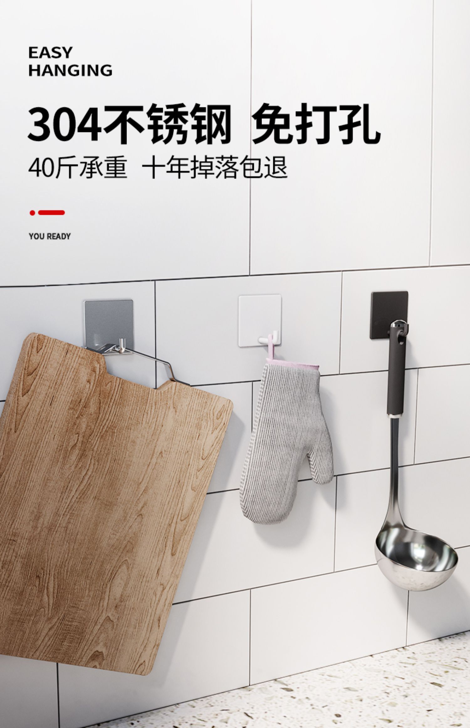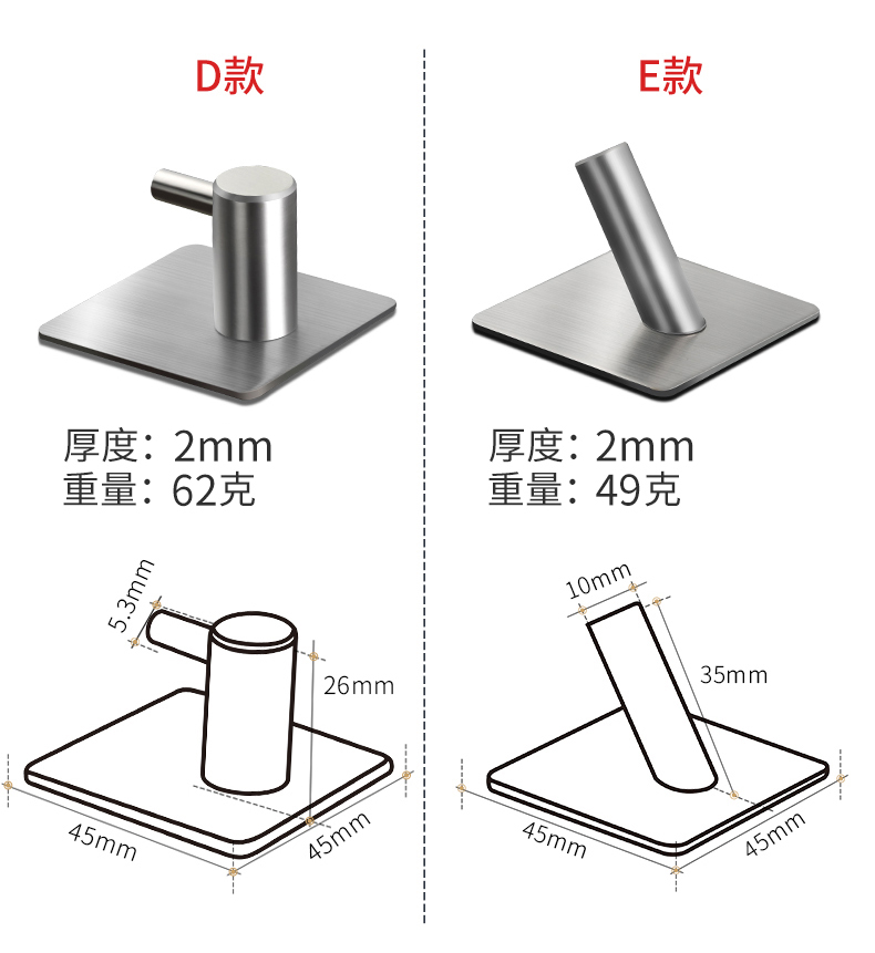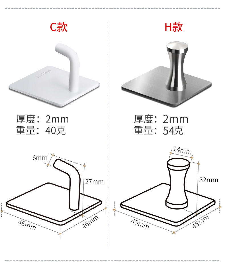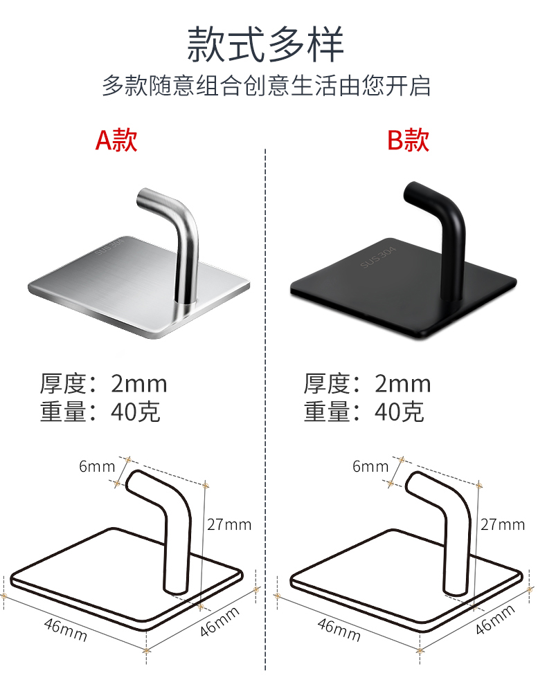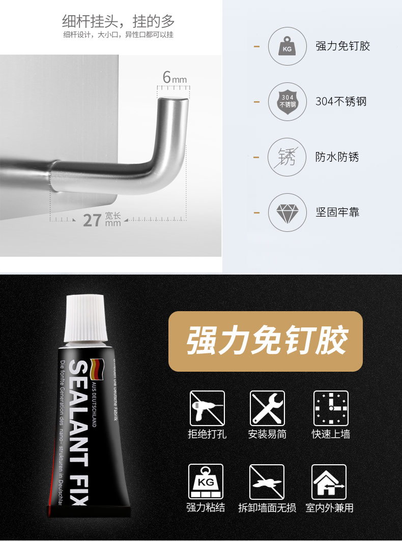 【玖都龙】304不锈钢免打孔挂钩