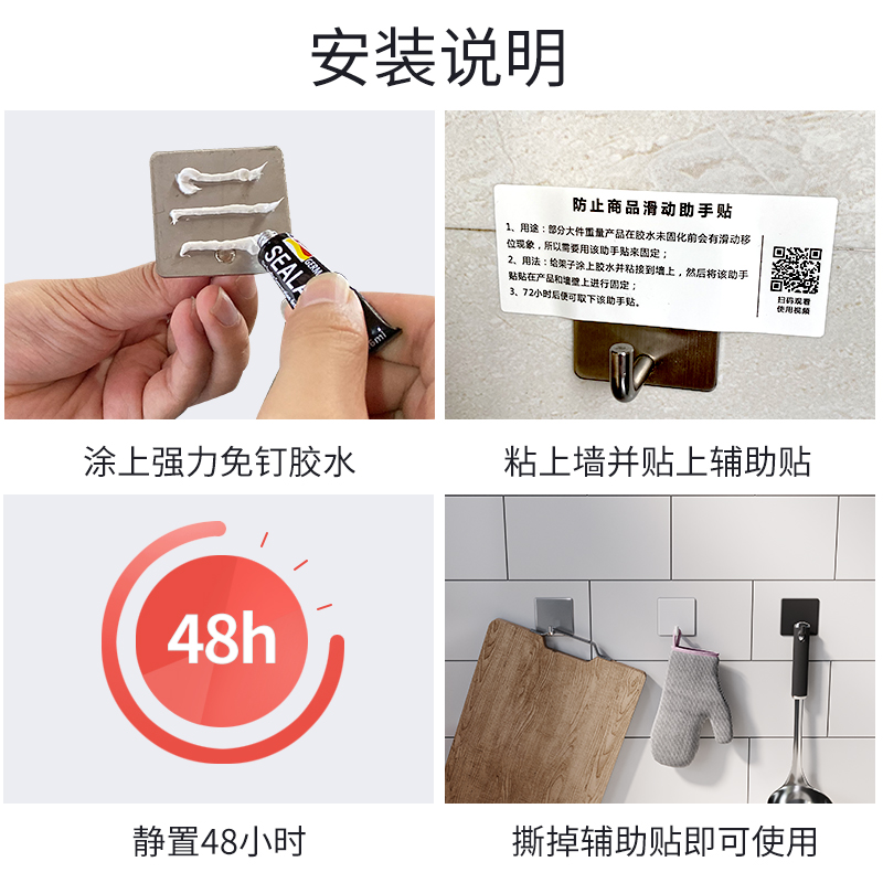 家用强力免打孔挂钩,卫生间厨房挂钩,优质太空铝挂钩钩可移动,间距随你定,灵活便捷,高低双沟,双倍利用,强力黏胶,超强承重,淋水也不怕!!【生锈包退~掉落包退~】
