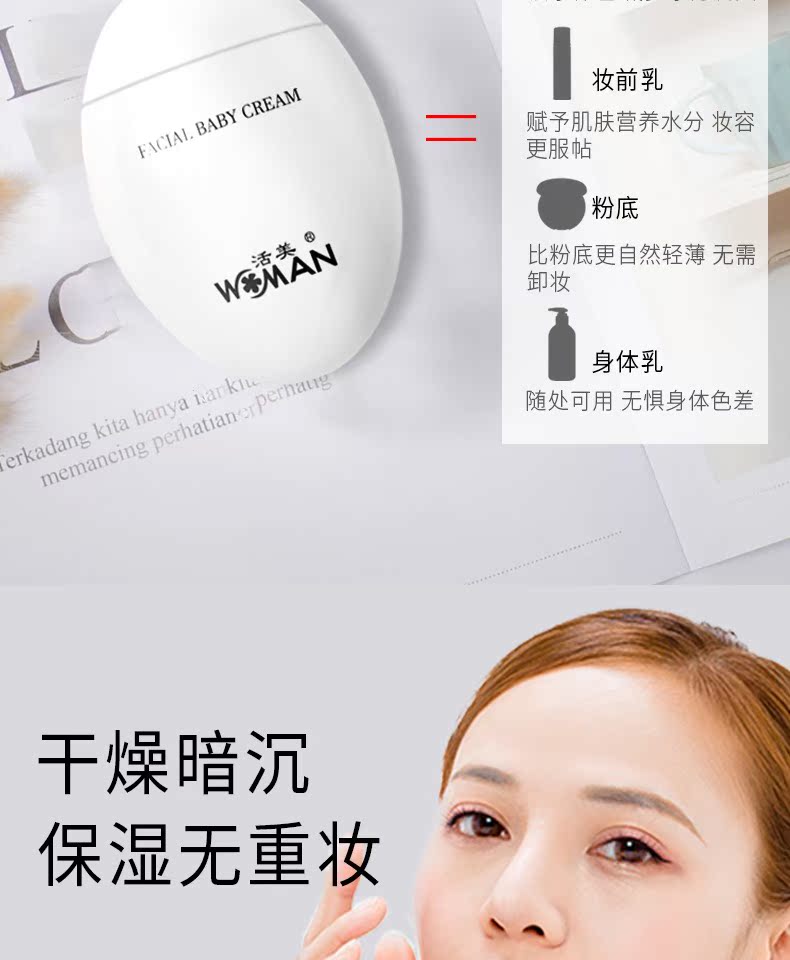 素颜裸妆,打造美丽女人,不化妆又想漂亮?10秒轻松变素颜女神!一抹提亮,自然妆感,无需卸妆,久久保湿,清透水润,贴合肌肤,提亮肤色,遮盖脸部瑕疵,晶莹剔透,打造自然裸妆!