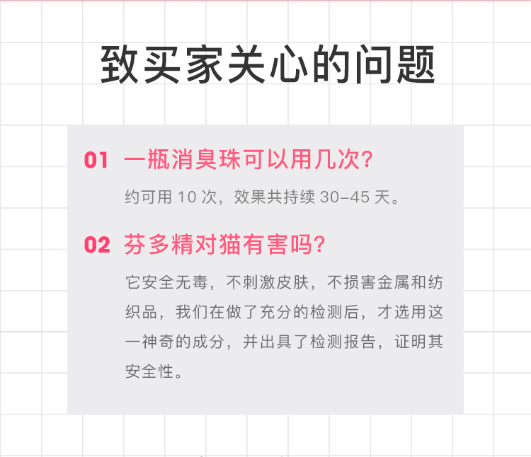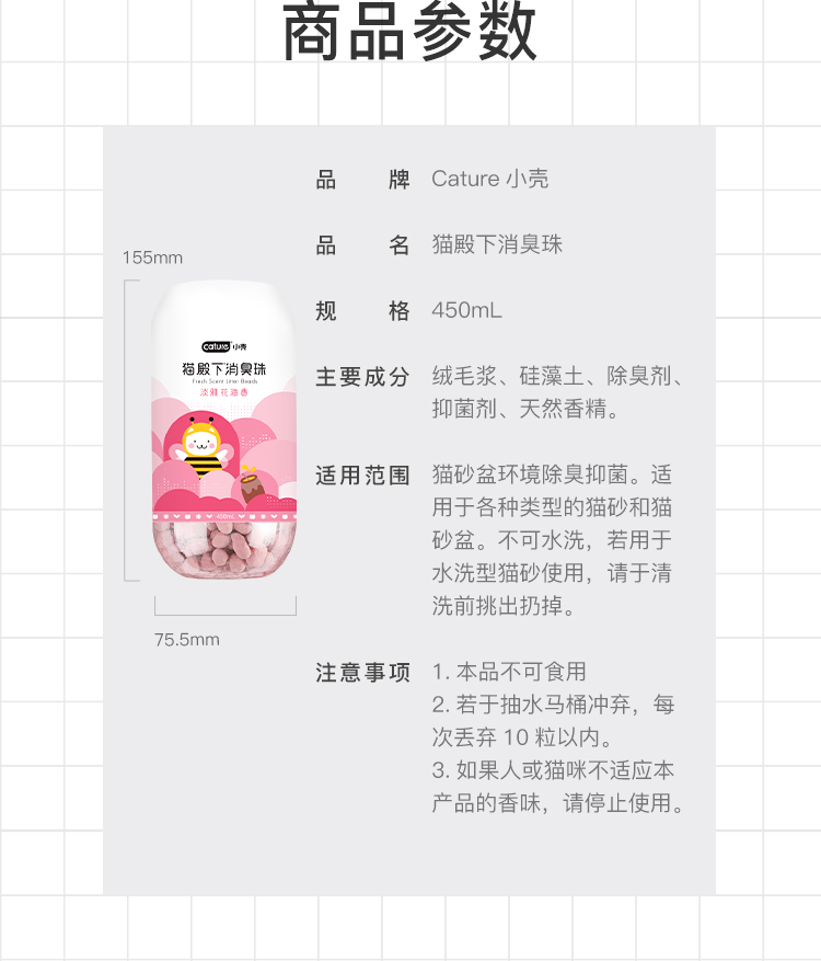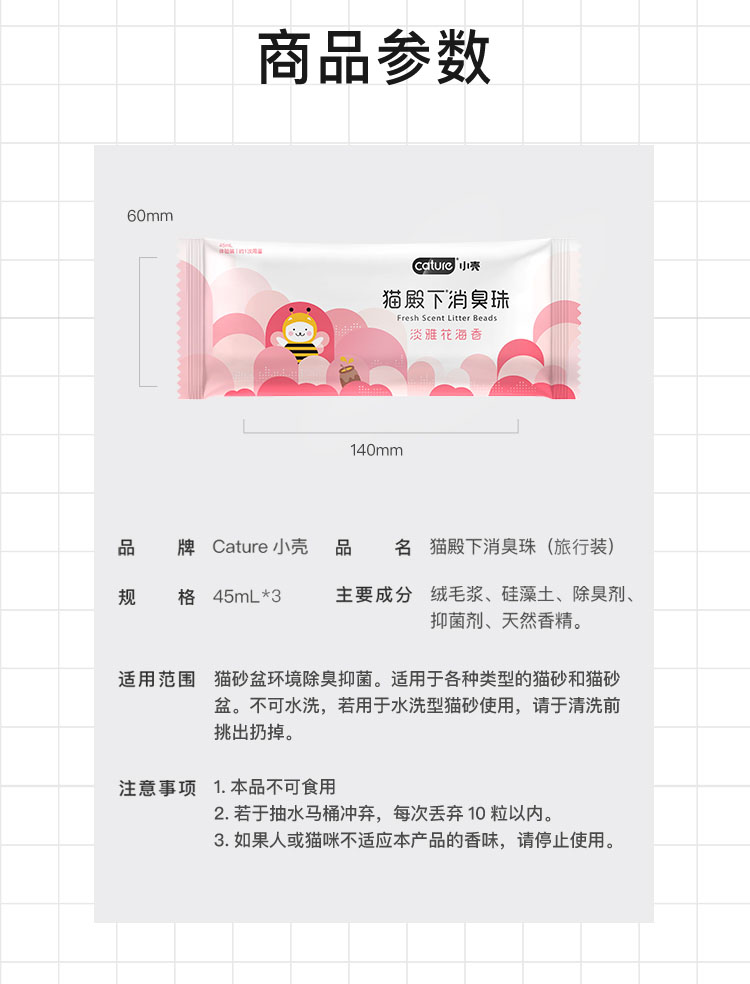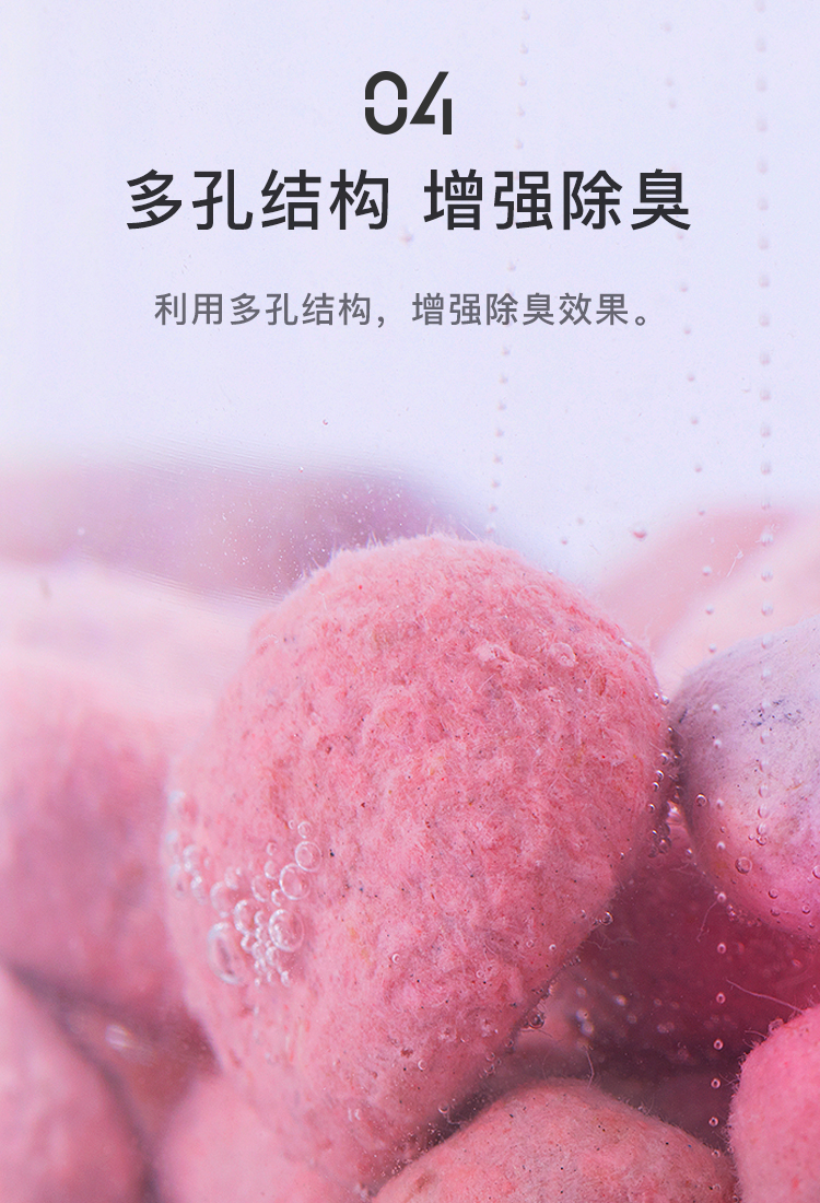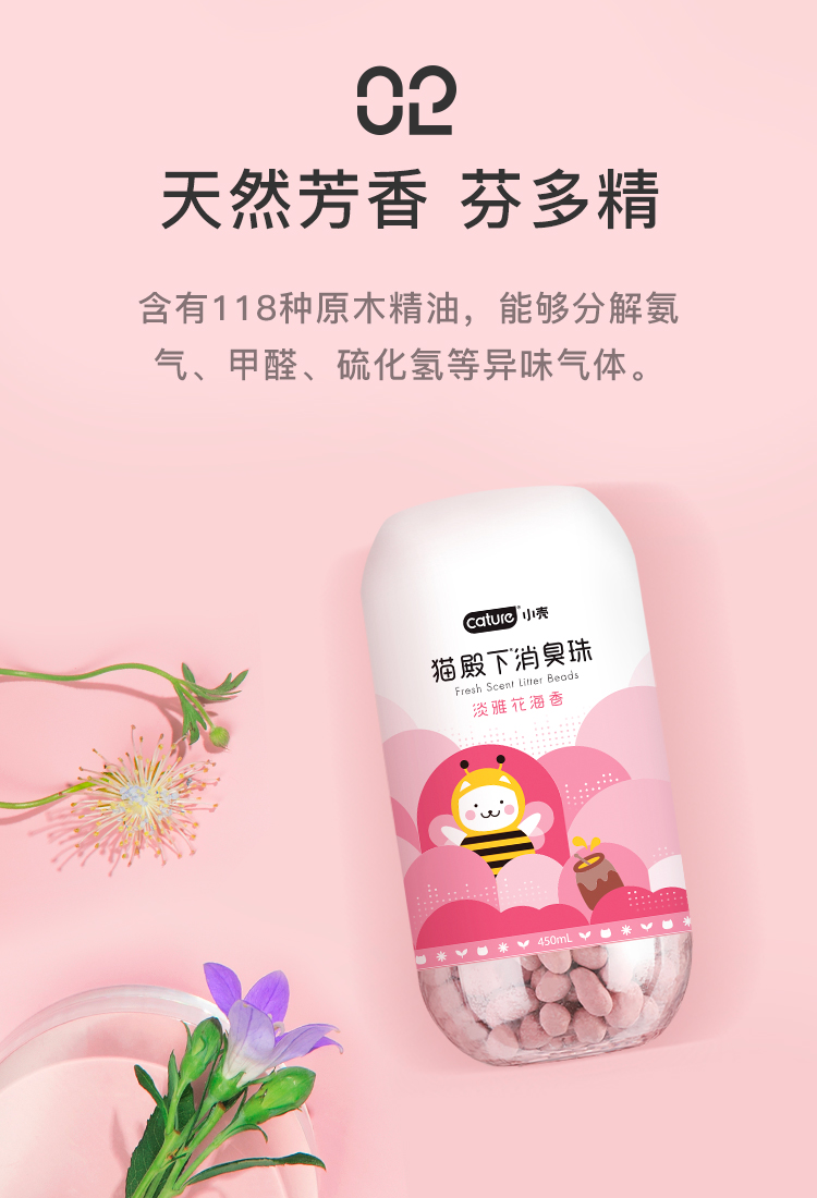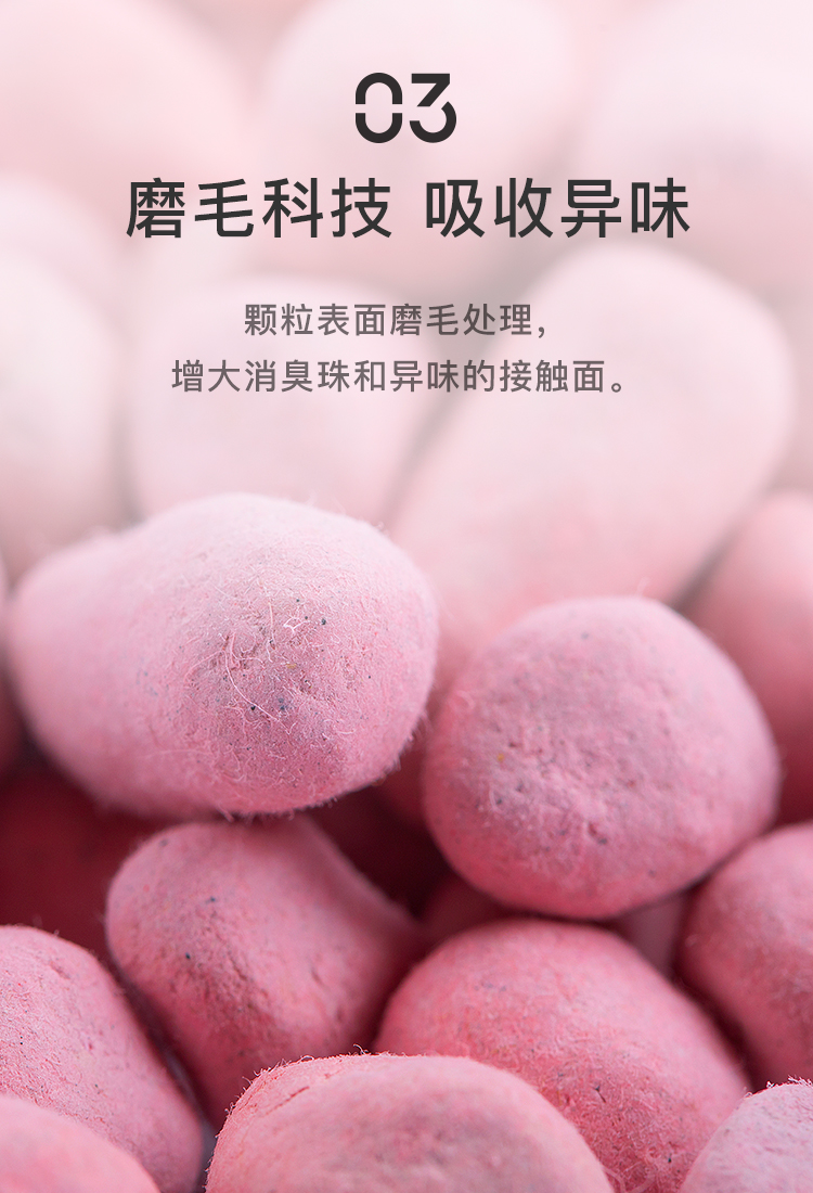 铲屎官必备除臭神器,颗粒表面磨毛处理,增大消臭珠和异味的接触面,里面含有118种原木精油,能够分解氨气,甲醛,硫化氢等异味气体,抑菌除臭,告别异味环境。