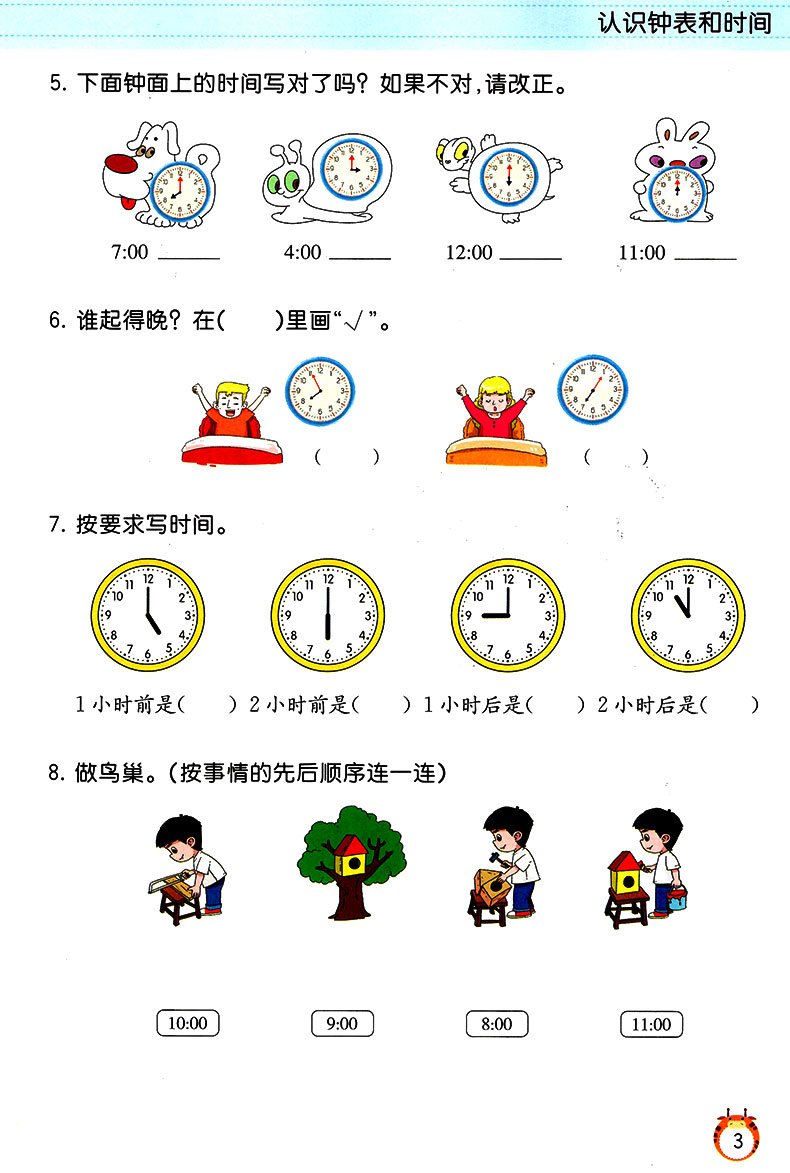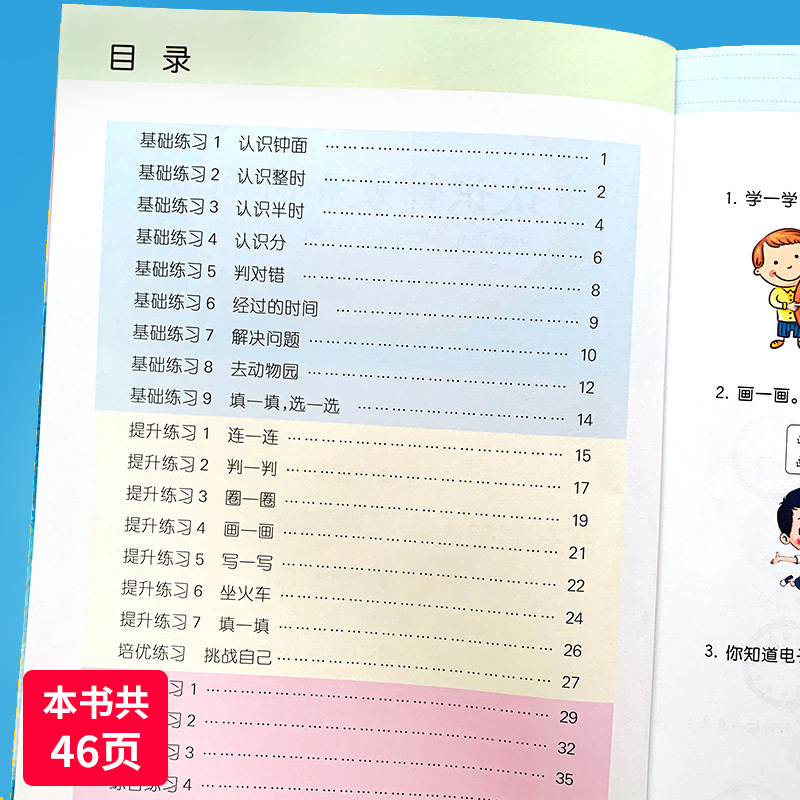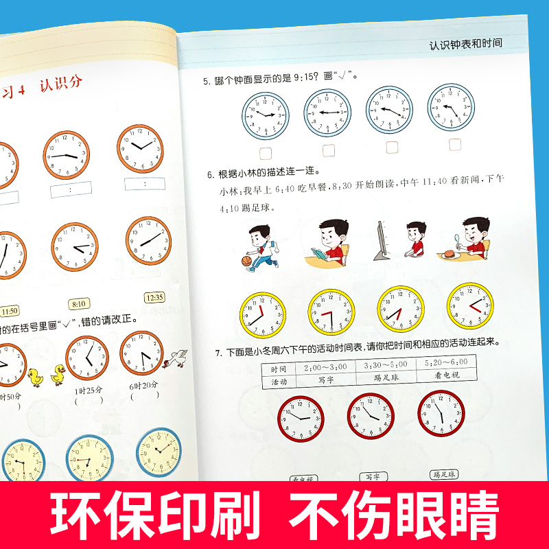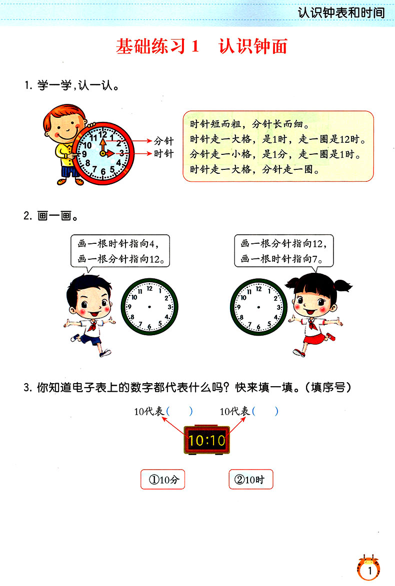 【彩绘版】一年级认识钟表和时间,扫码展现答案,方便检查,心算口算速算练习,深入的思路引导,充分调动学习兴趣,全面提升孩子计算能力~~【赠运费险】