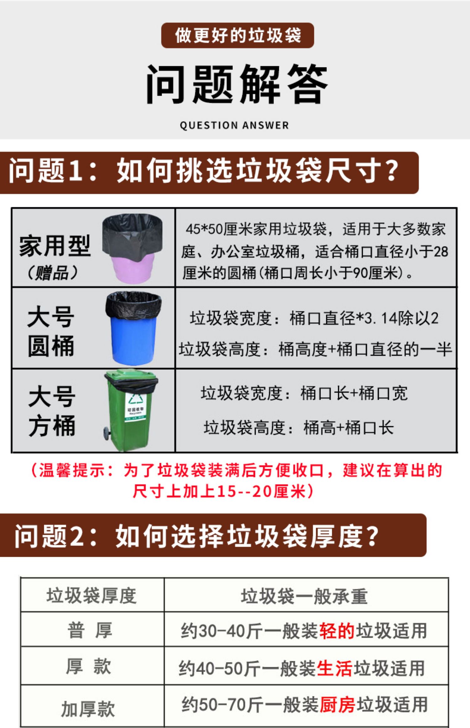 【买2份多送100只,独立包装5卷共100只】高评价,环保无异味,光泽度好,韧性十足,加大加厚不漏水,承重可达20斤,断点设计,方便快捷,高强度耐撕扯,装热水都不漏!老结实了,质量杠杠的!