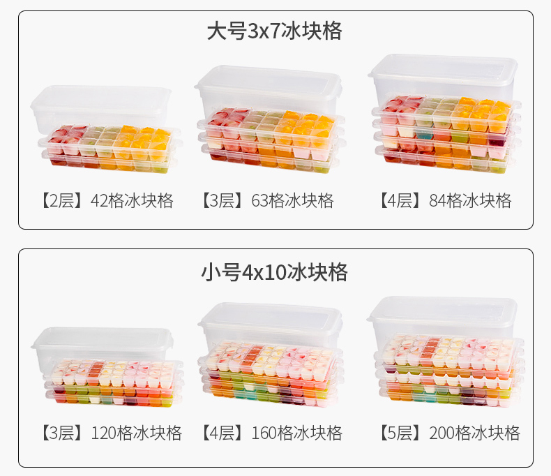 【共40大格】食品级PP5材质无色环保材质,不变形,安全无味放心用~轻轻一按就脱模,冰水果,牛奶,花茶都OK,冰爽你的味蕾,赶走燥热!