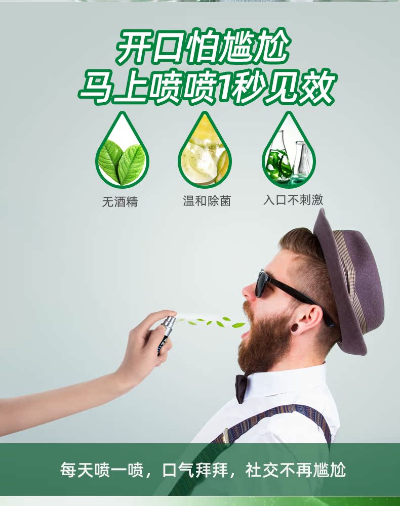 【店铺满60元减20元】从根源清除口腔异味,口气清新长达12个小时,无酒精口感温和,方便携带,一喷解决异味!