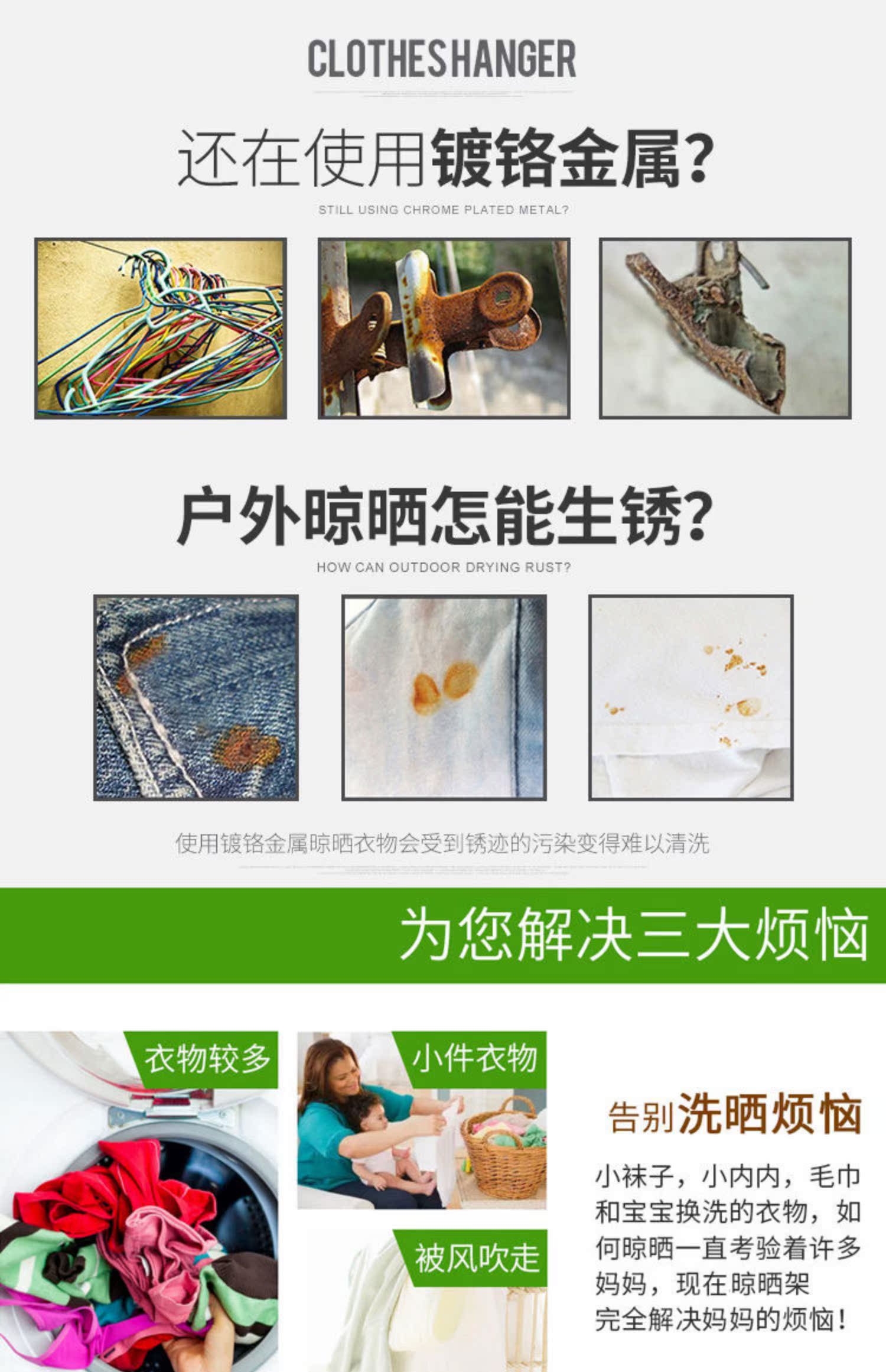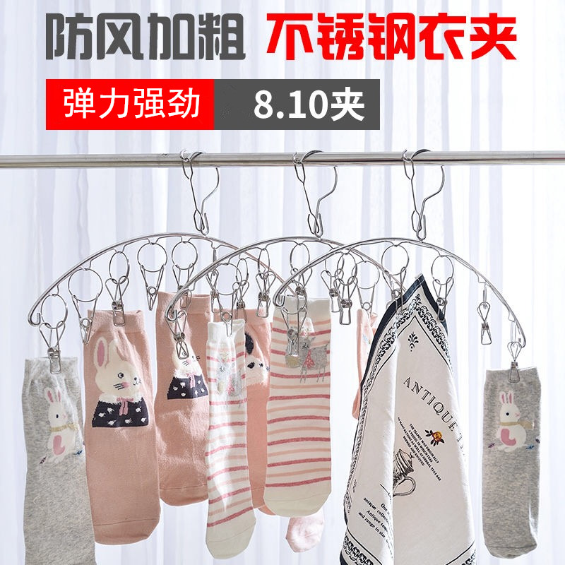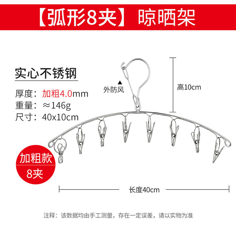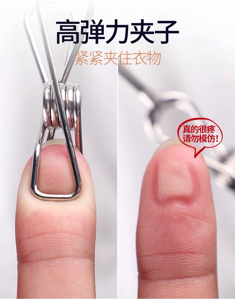 不锈钢材质,双层加固,8个夹头设计,强劲夹力,高弹力双线夹,360°可旋转。耐高温不生锈,结实耐用,晾内衣、晾袜子,全部搞定~居家必备晾晒神器~