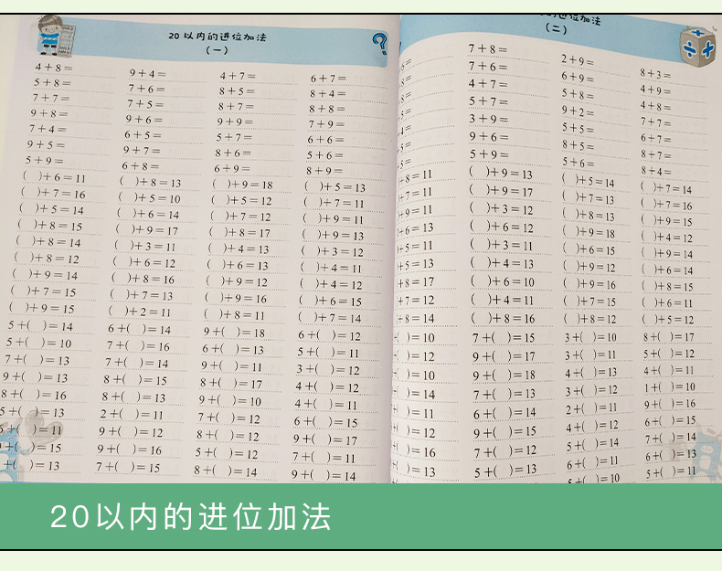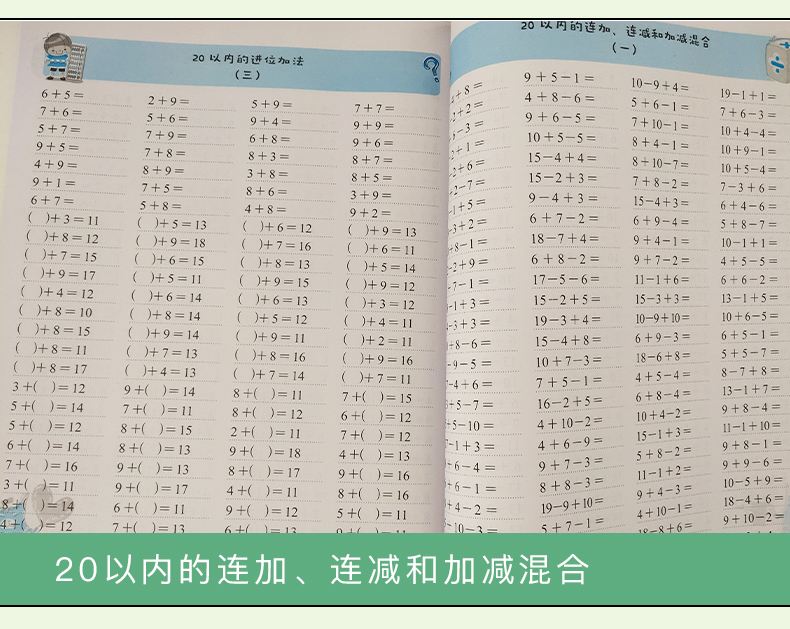 小学一年级数学口算上下全2册,20以内算题卡,超多6000题,激发脑力,提高观察力,训练思维,提高记忆,做数学小天才,让孩子赢在起跑线上!