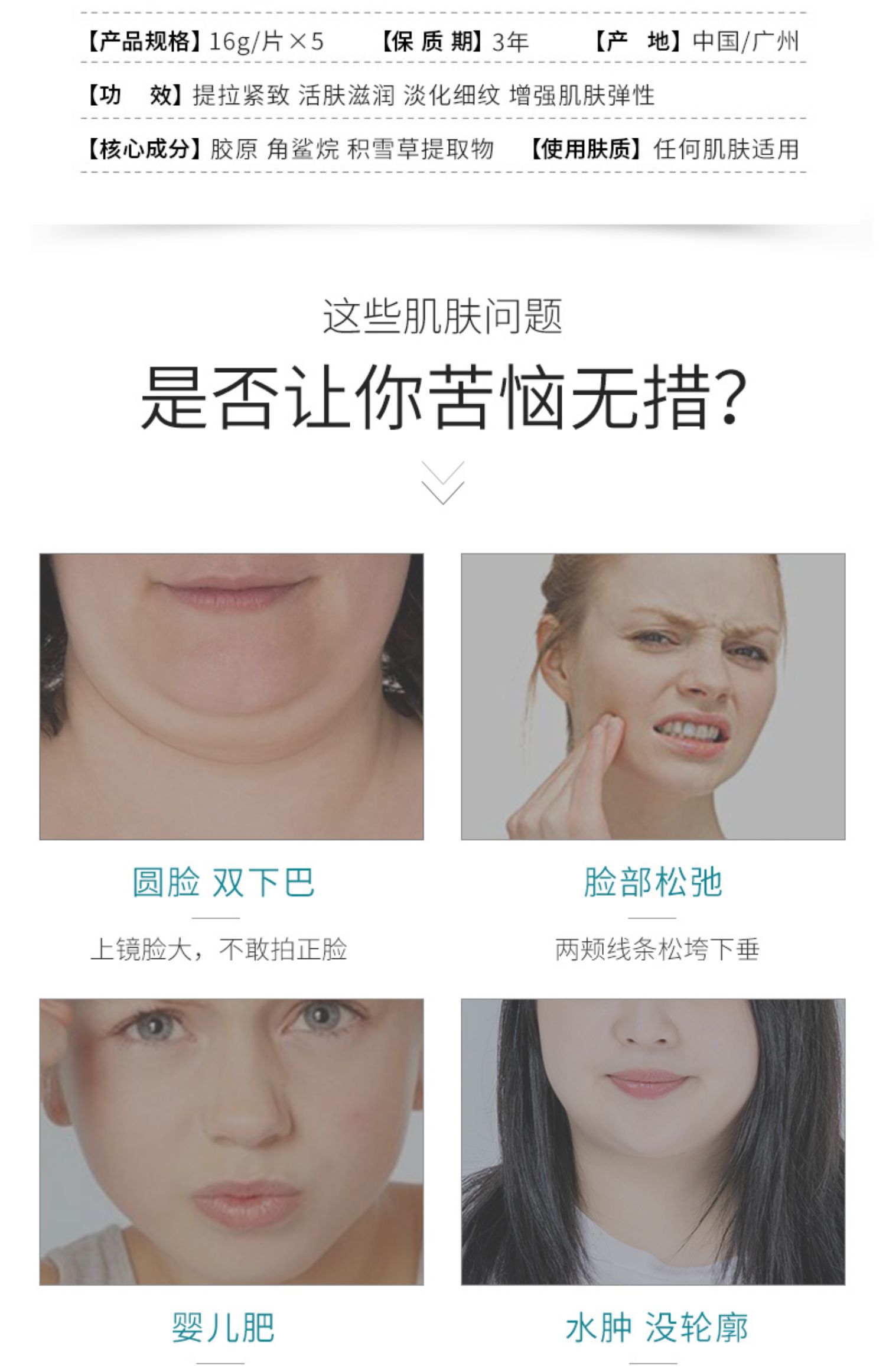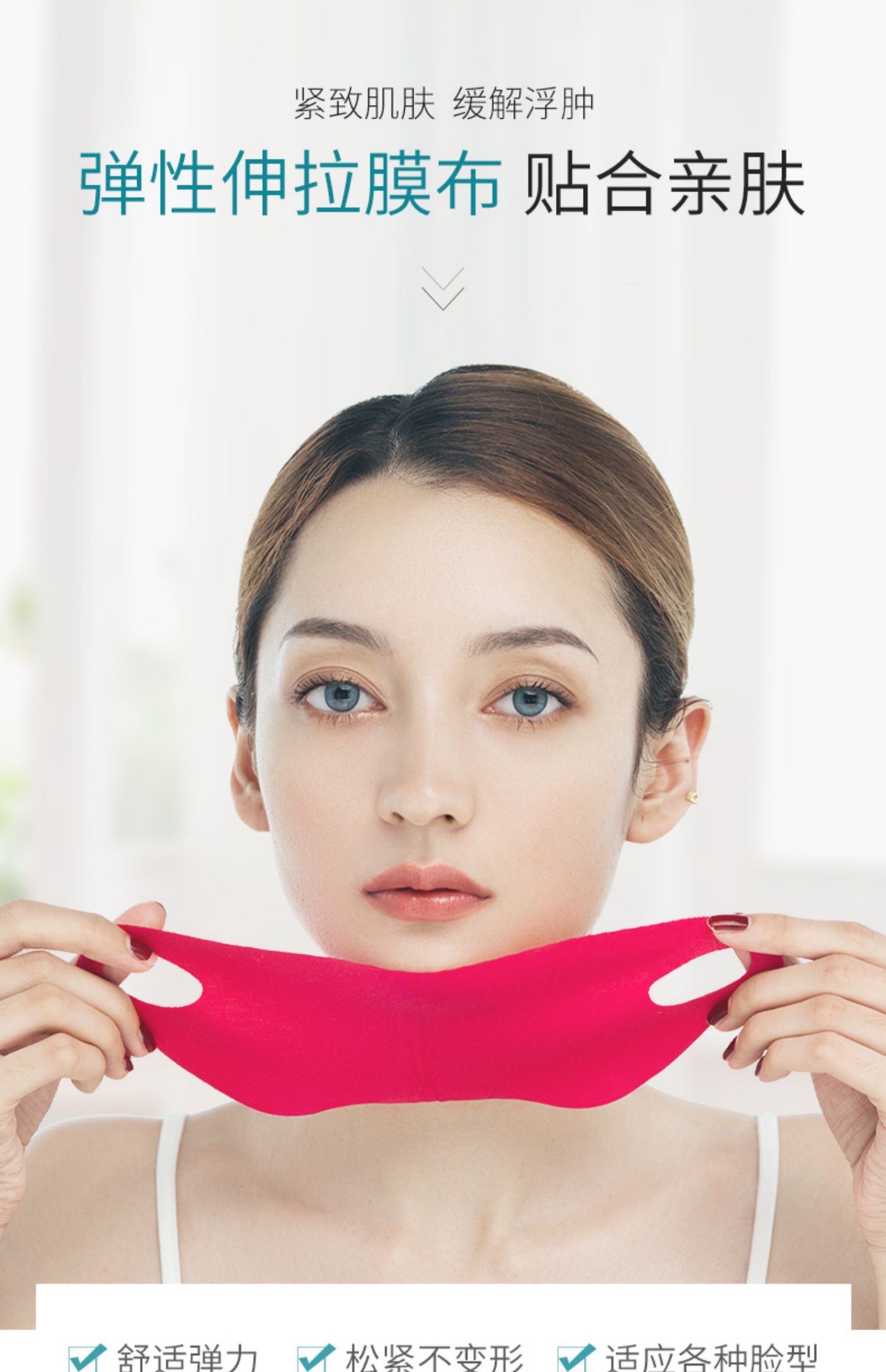 【超值5片装】一提一拉塑造小v脸,15分钟深度激发肌肤弹力,收缩轮廓,紧实松弛肌肉,深入补水,收缩毛孔,淡化细纹淡纹,高弹复原力面膜,持续拉伸不变形,长时佩戴不累,塑颜v脸,让颜值一直在线!