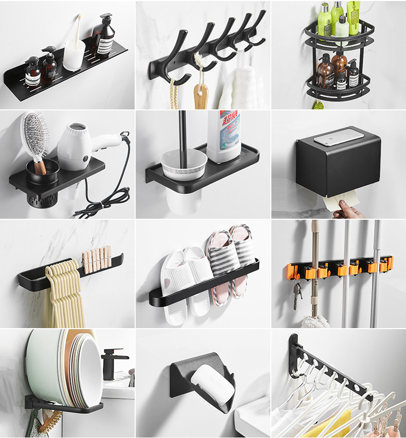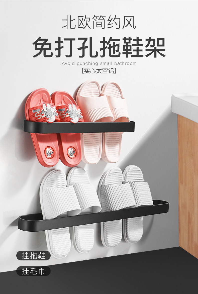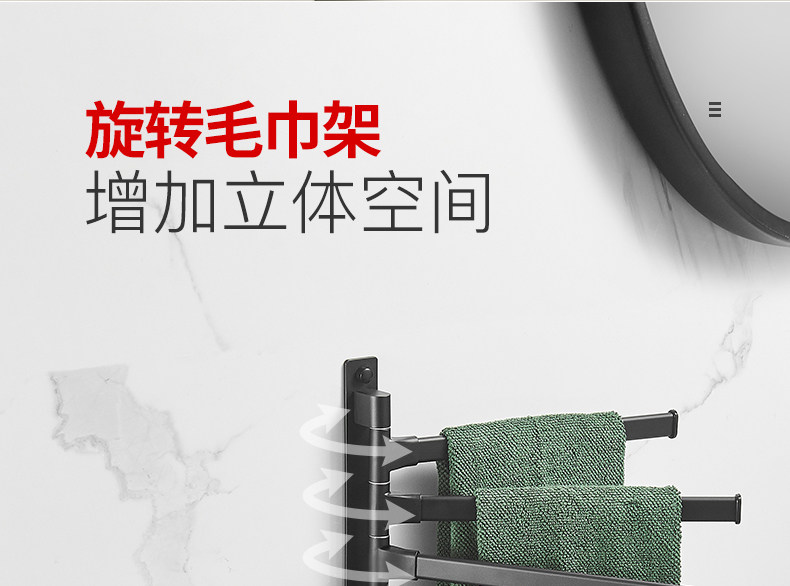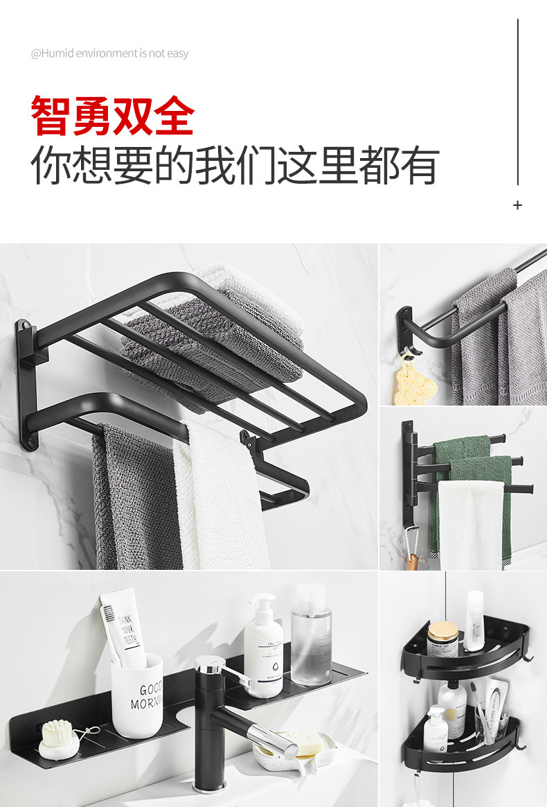 太空铝免打孔置物架浴巾架