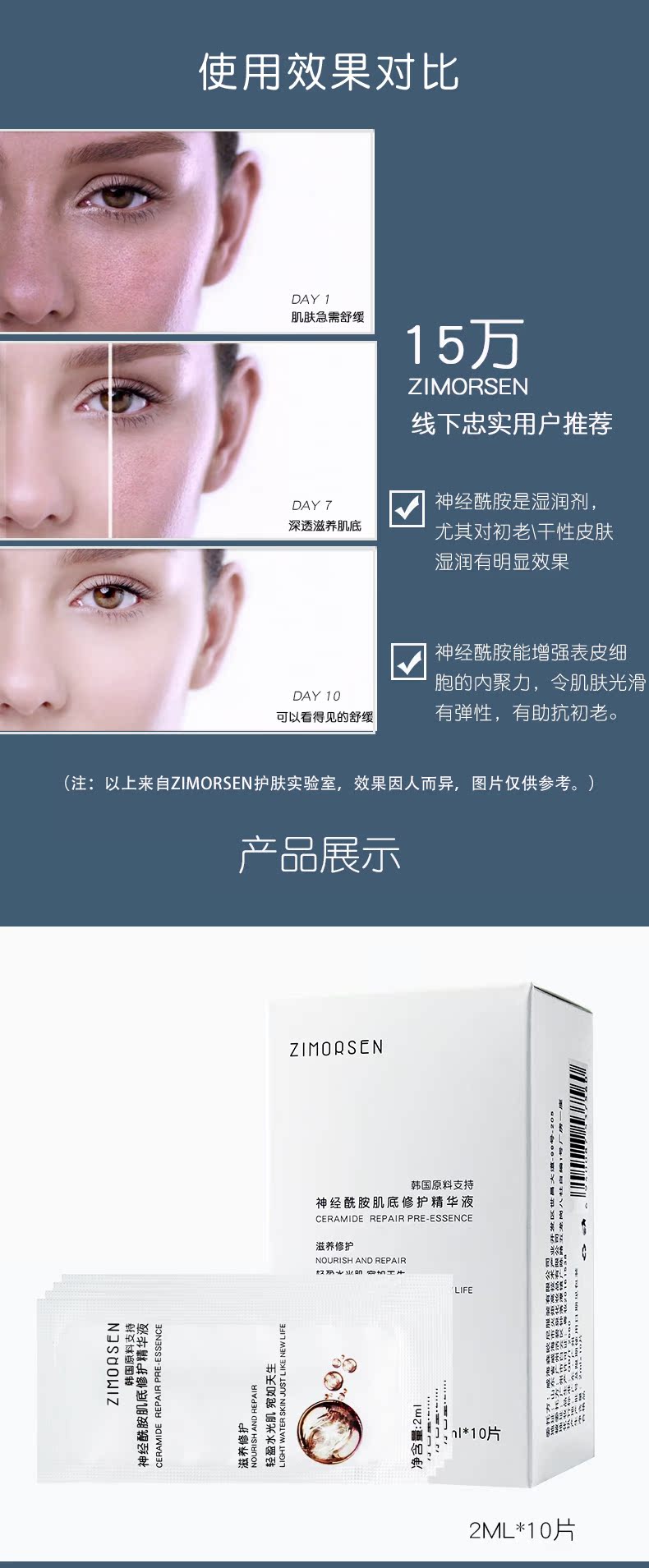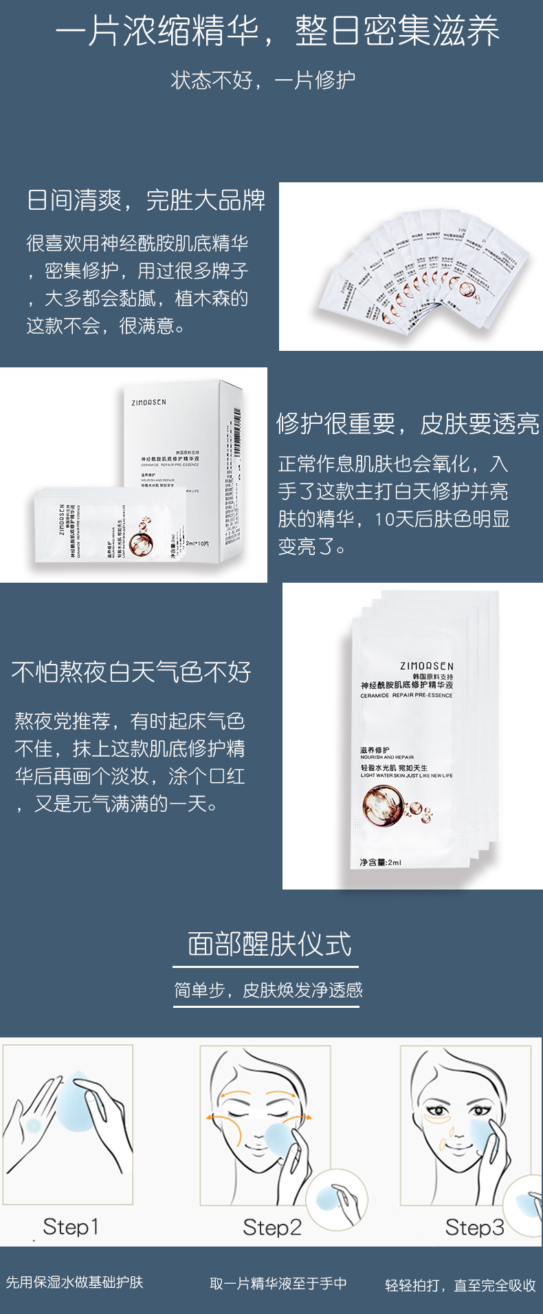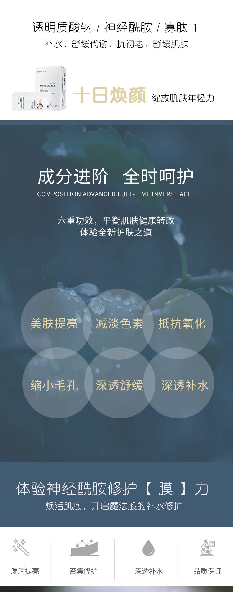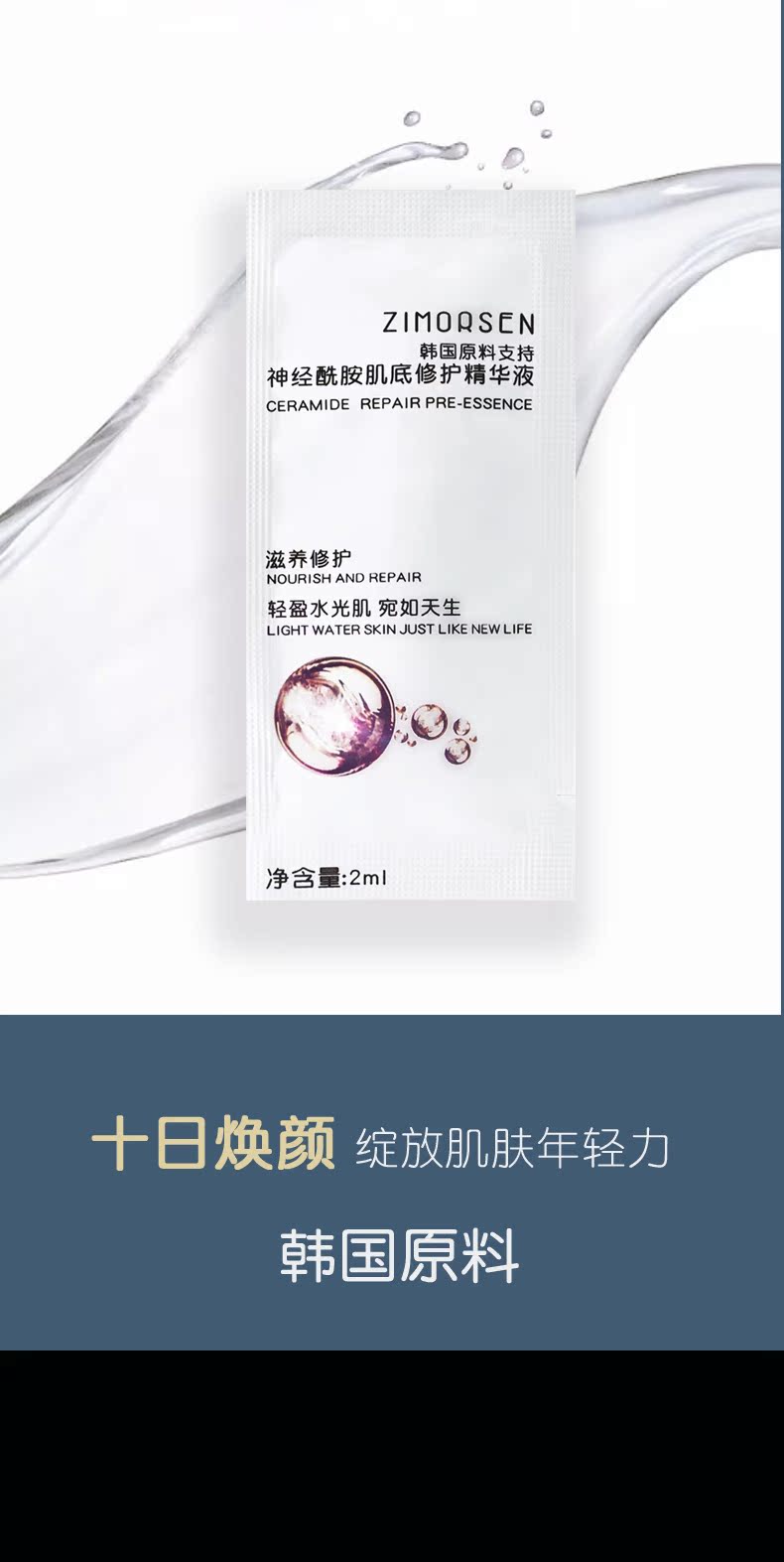 【8.9秒杀10片精华液】三大核心成分,神经酰胺,寡肽,透明质酸,修护角质层,增强肌肤抵御力,补水保湿,缩小毛孔,强化肌肤屏障,还你婴儿般水光嫩滑肌肤。