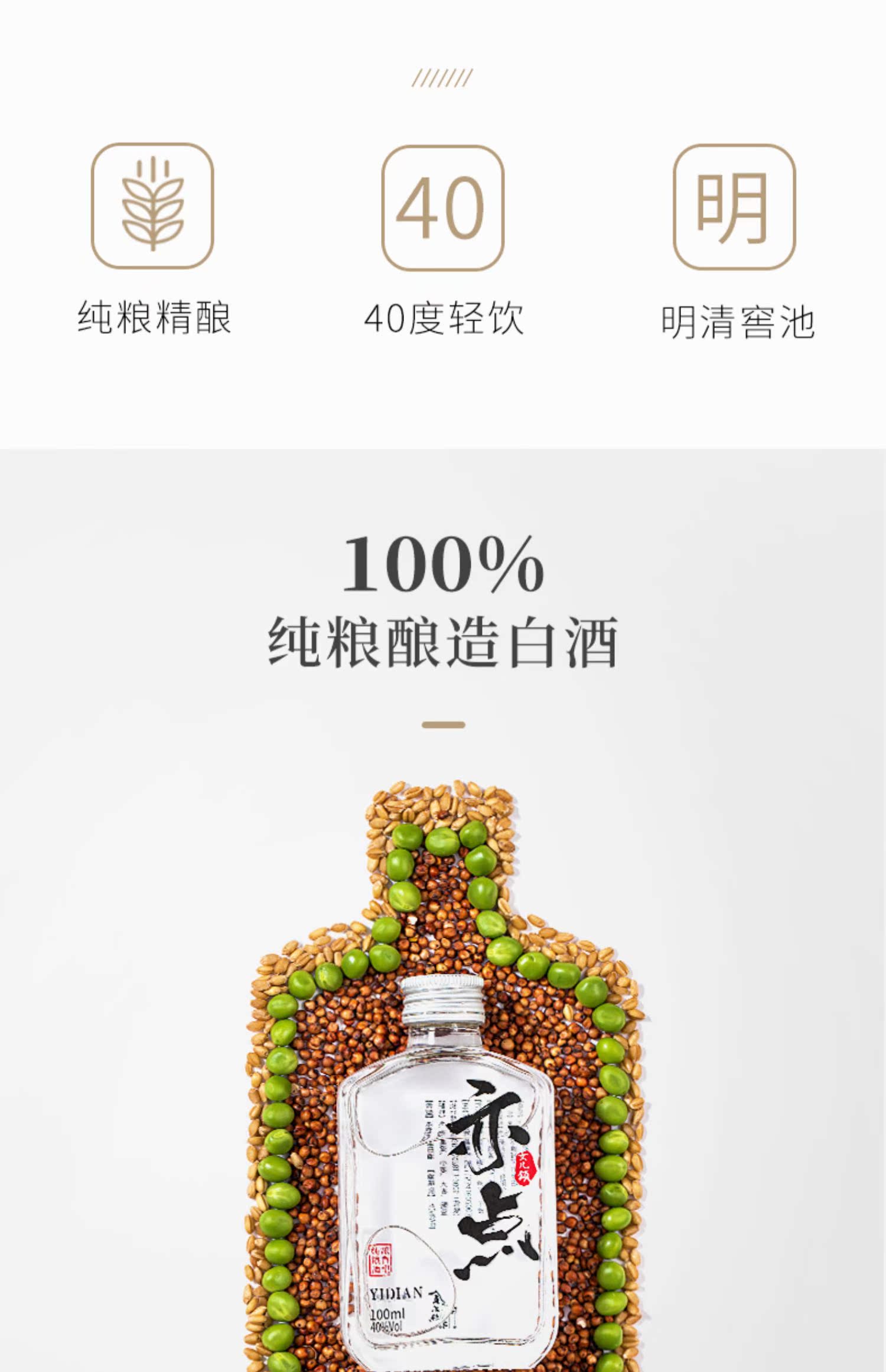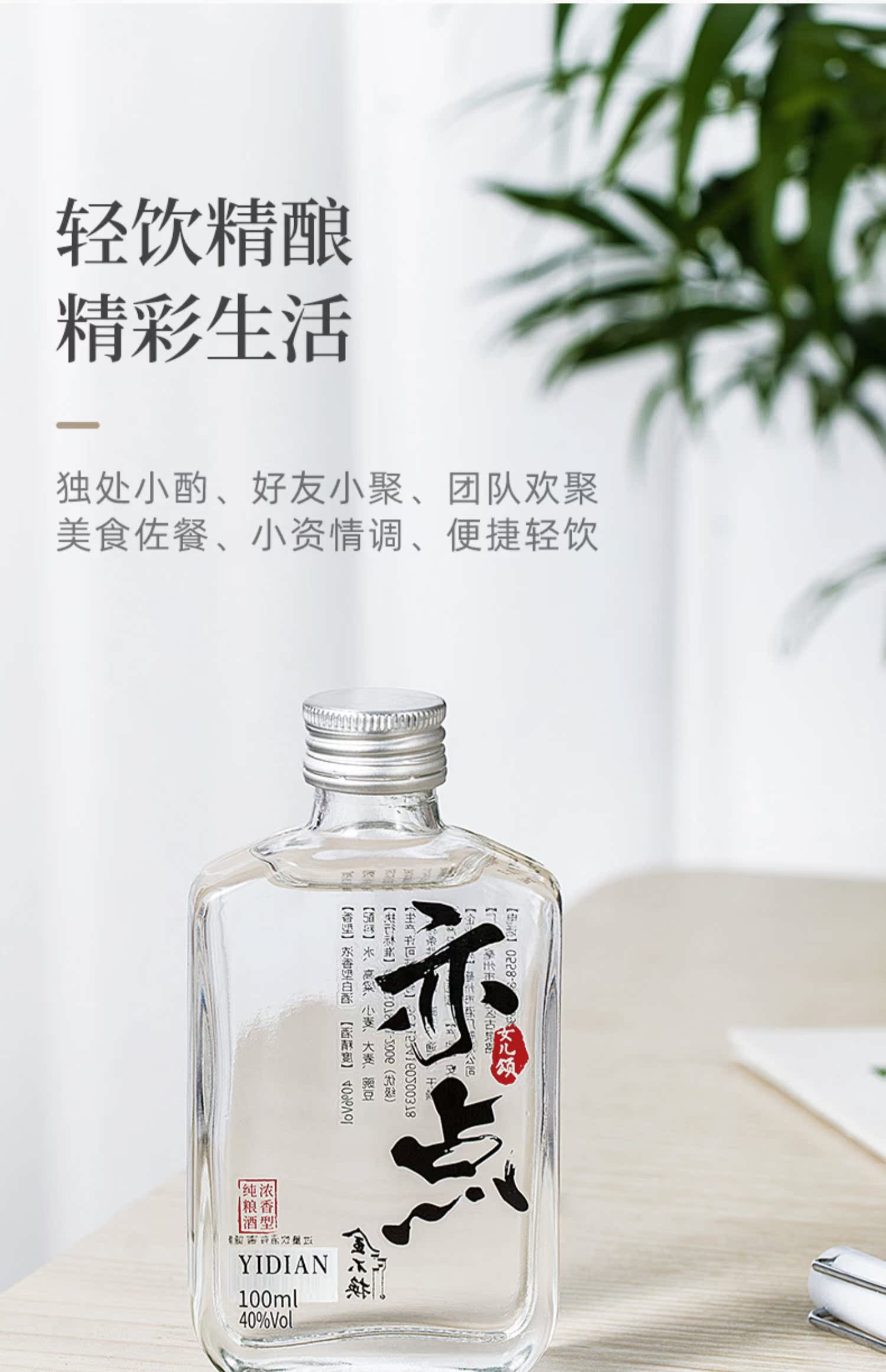 金不换亦点国产小酒纯粮食酿造白酒,小瓶白酒100ml,纯粮酿造入口绵柔,不辣喉,超级划算,40度轻饮,微醺不醉,固态发酵,传统工艺,小而精美,手感舒适,回味无穷【赠运险费】