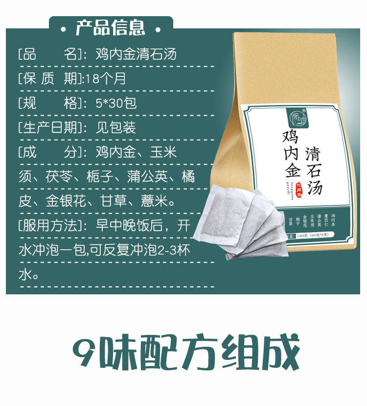 【拍两件】【买二发三,再送一包金钱草】大牌子有保证,药食同源,健康茶饮,九种天然原材料萃取而成。草本原料产于神农架,高山雪水灌溉,阳光直晒,自然生长,手工采摘,店主亲测,去石成功。