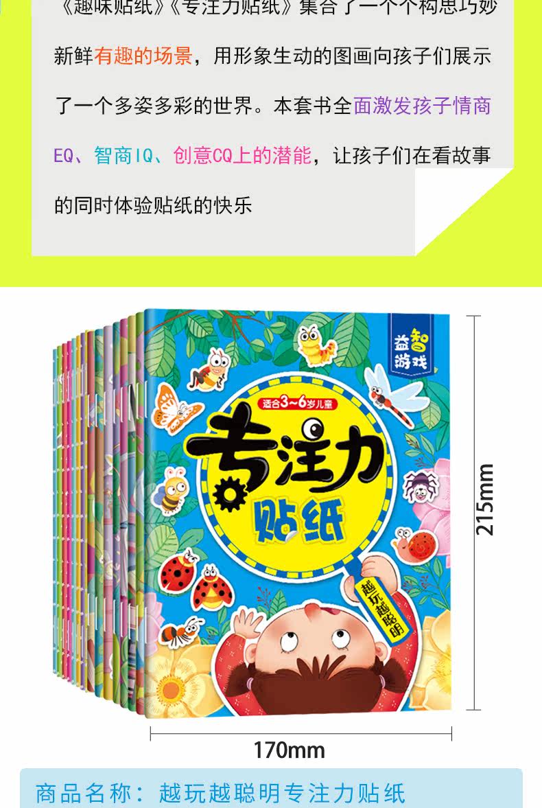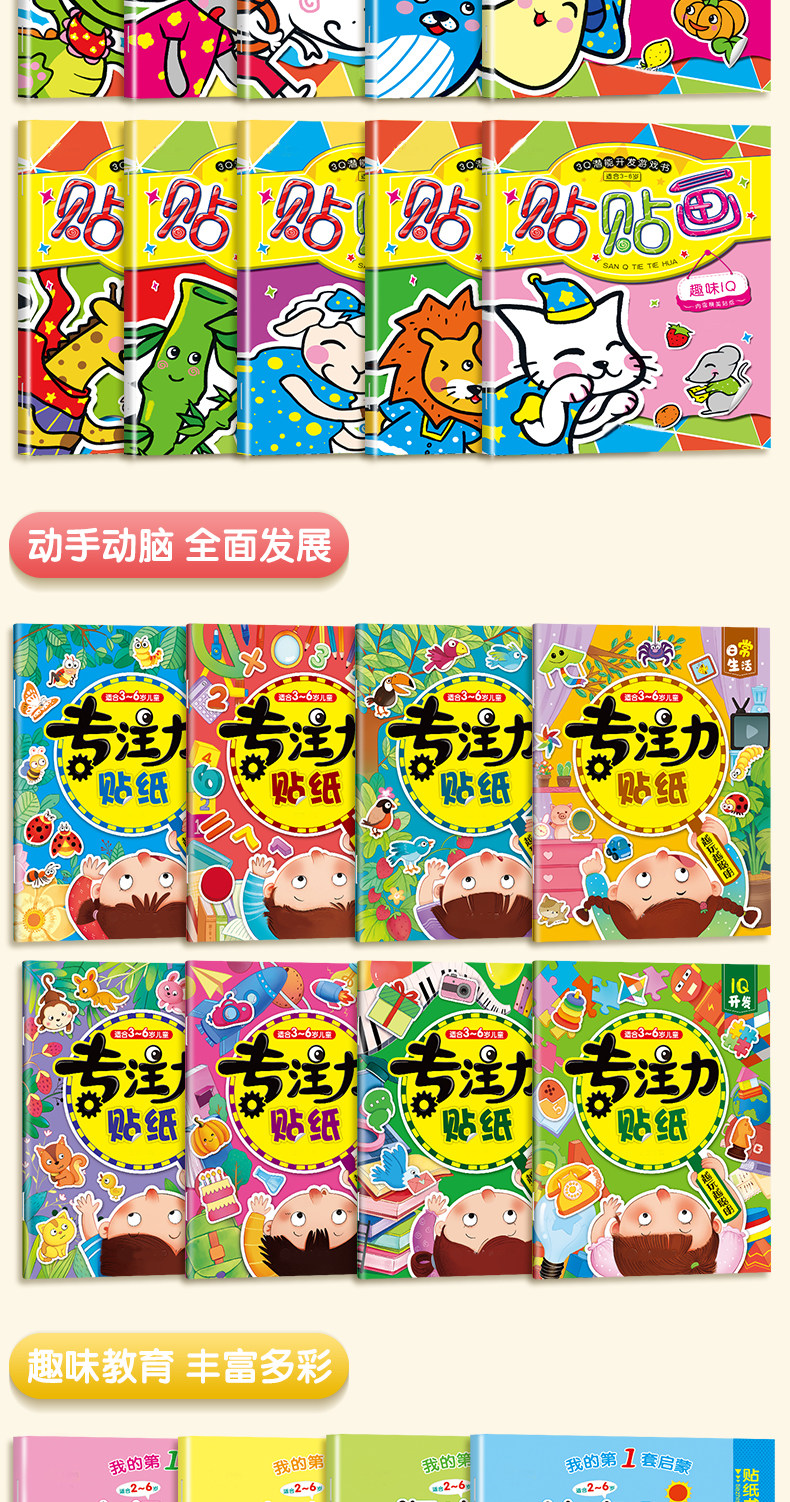 儿童专注力训练贴纸书0-6岁反复贴早教书