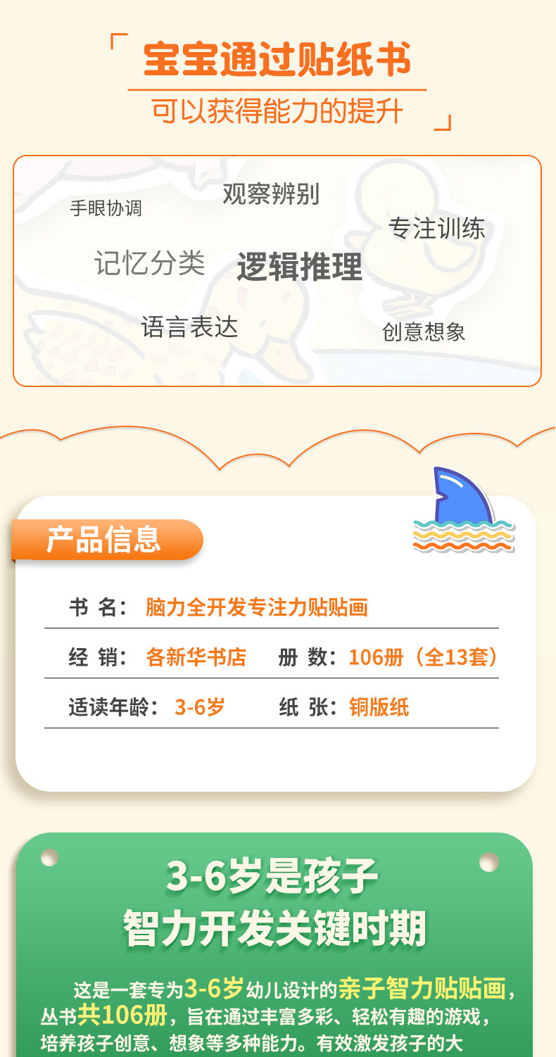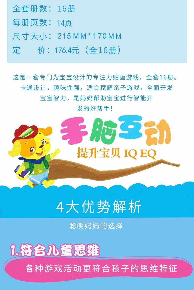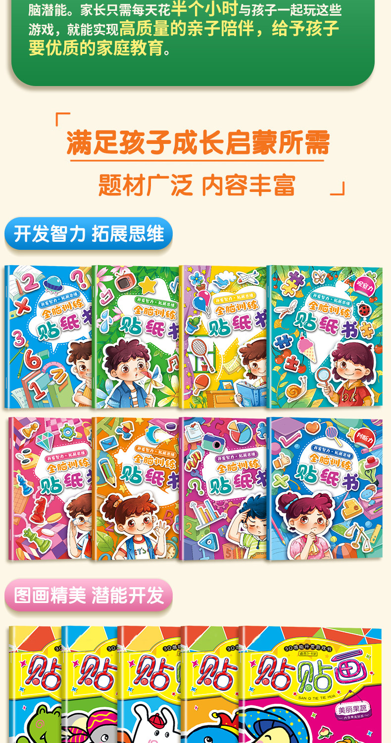 全脑训练,专注宝宝记忆力和创造力等各方面能力训练,内容丰富,颜色鲜艳,场景多样有趣