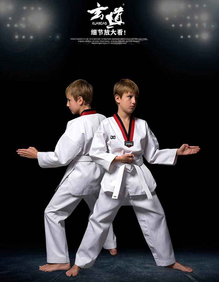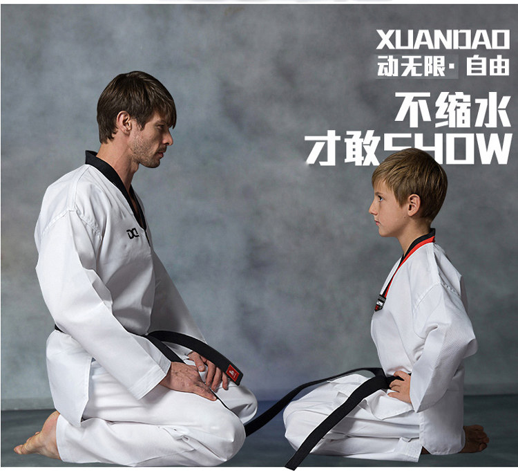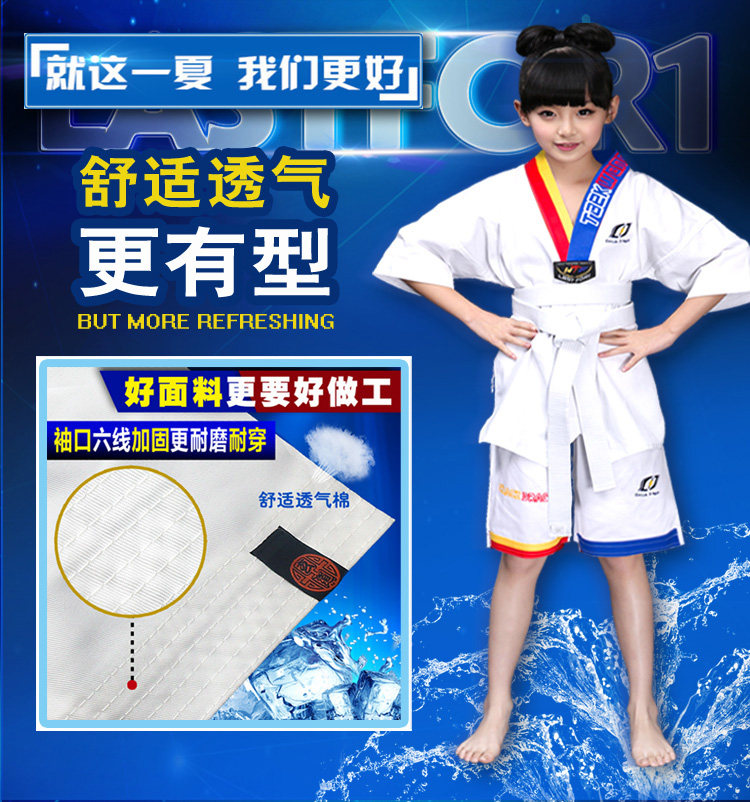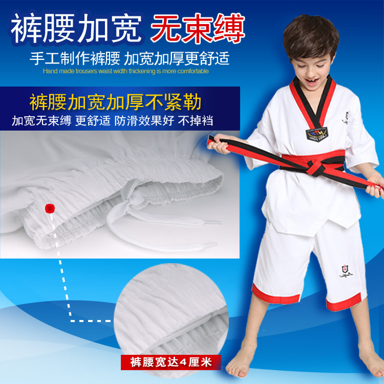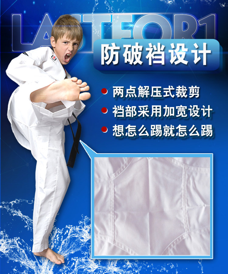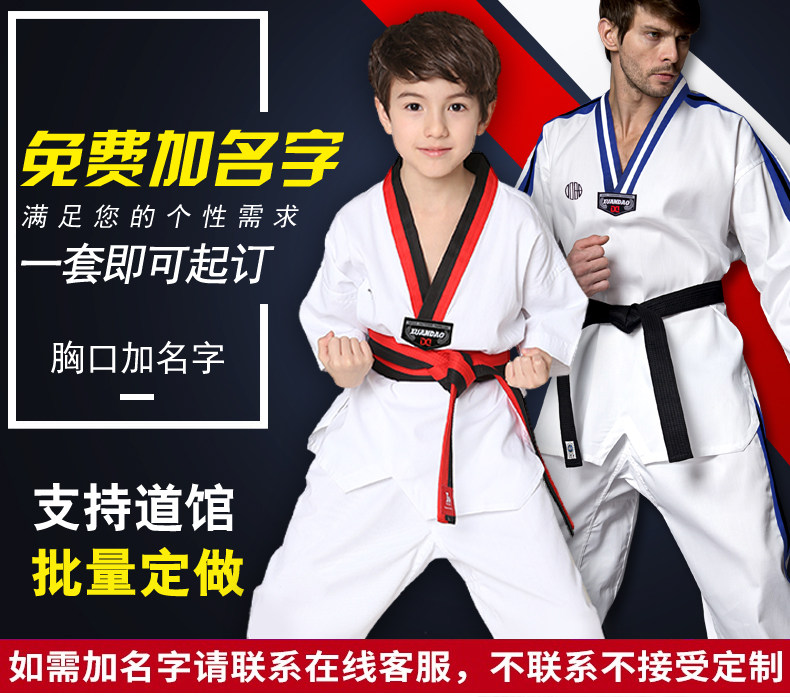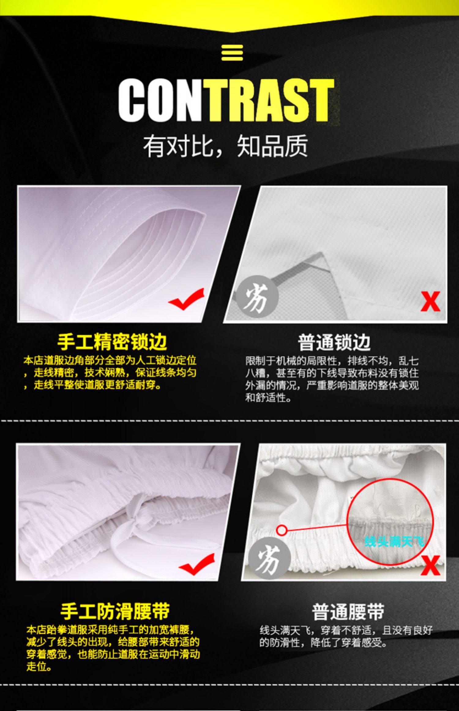 (含衣服+裤子+腰带)纯棉跆拳道服,采用全棉面料,大师风范,立体剪裁,学习跆拳道从现在开始,保护自我,让孩子远离校园暴力【赠运费险】