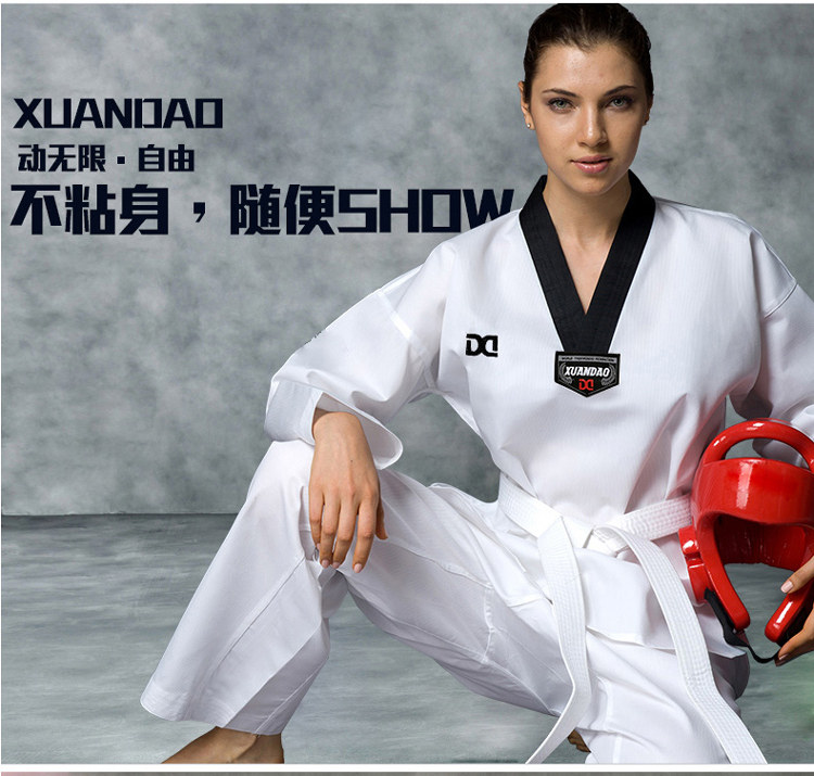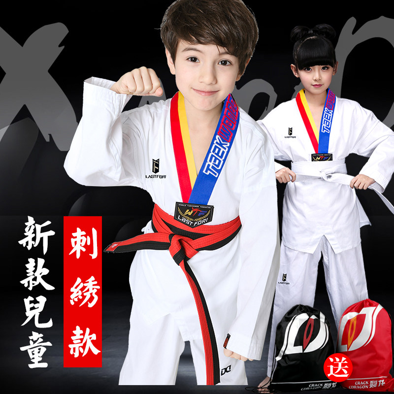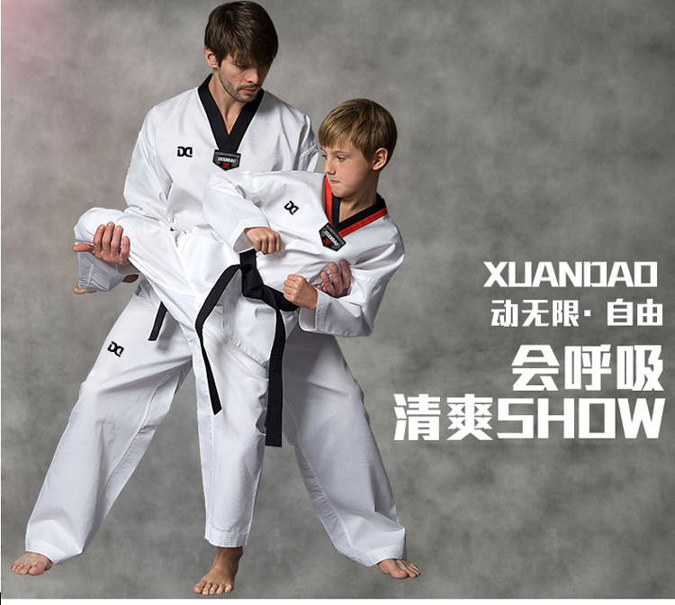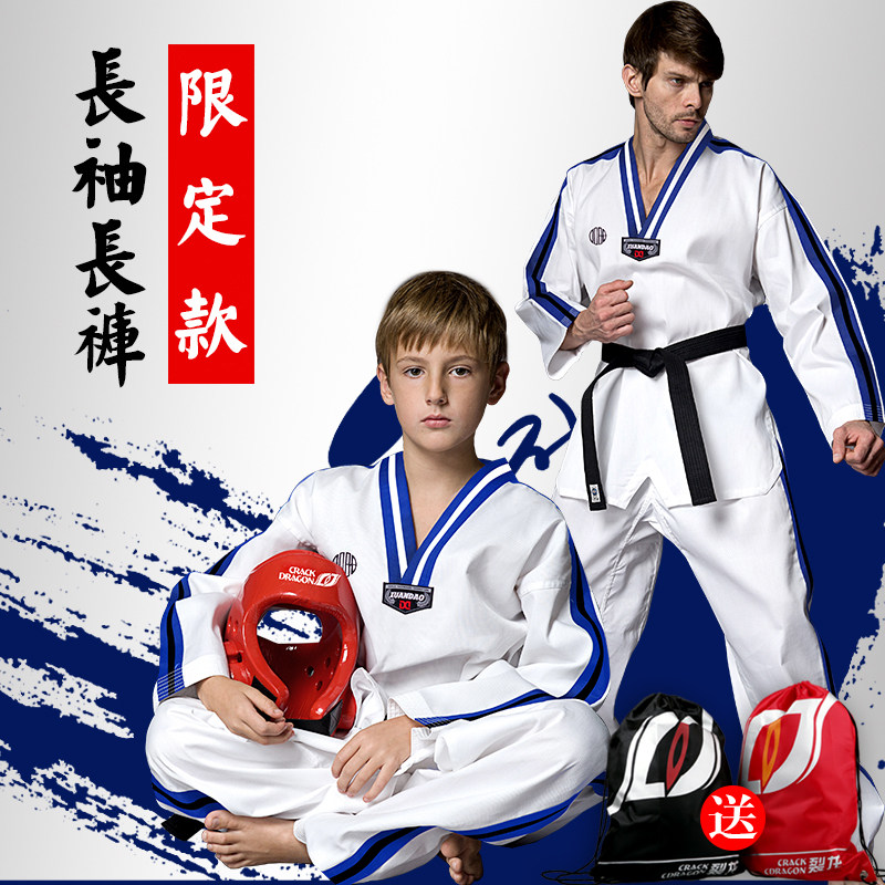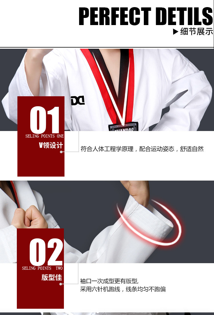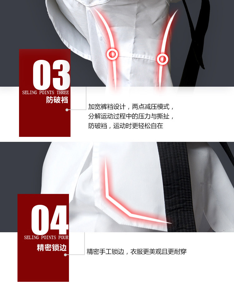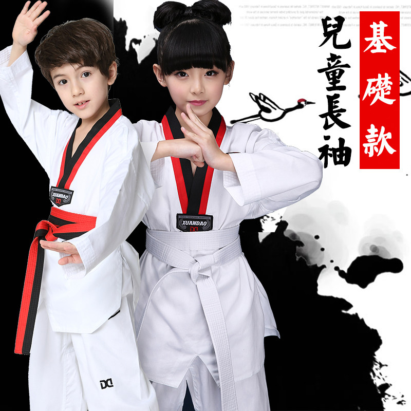 (含衣服+裤子+腰带)纯棉跆拳道服,采用全棉面料,大师风范,立体剪裁,学习跆拳道从现在开始,保护自我,让孩子远离校园暴力【赠运费险】
