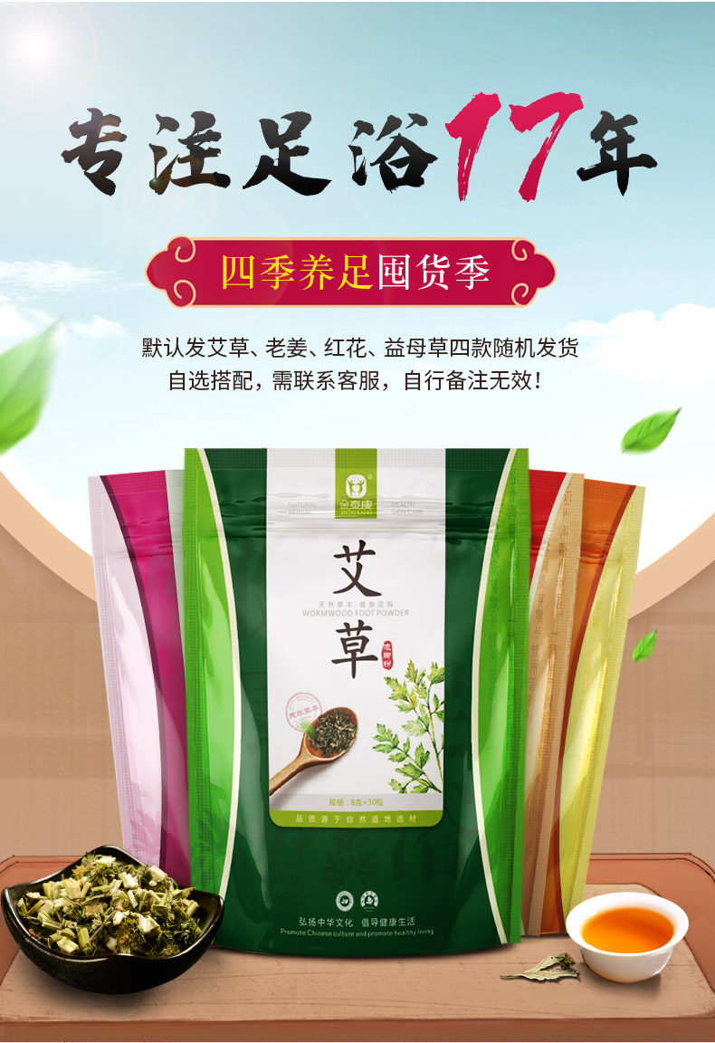 拍1=4袋(艾草、老姜、藏红花、百草各1袋)4种功效搭配,一共120小包,每天一泡,可以用整整4个月哦;健康养生,远离医生,活血驱寒祛湿,改善睡眠,摆脱亚健康,养生先养脚~