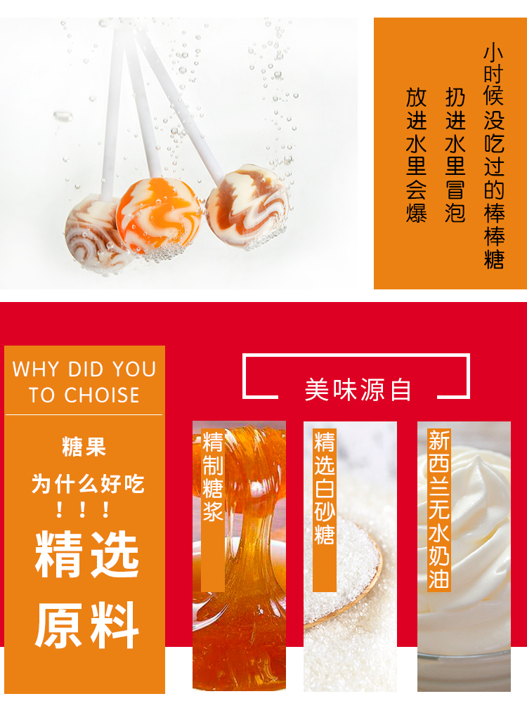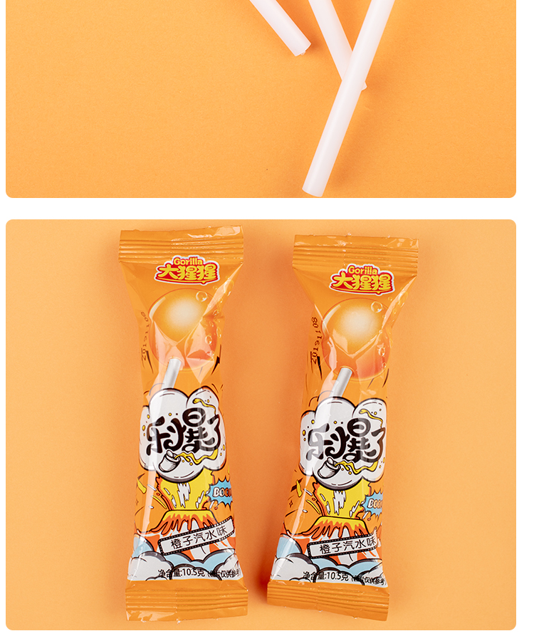 香浓纯正,添加鲜甜果汁,吃一口,果香四溢,新升级多种口味,宠爱你的味蕾,橙子可乐汽水味的融合,追忆童年小伙伴一起快乐的日子.