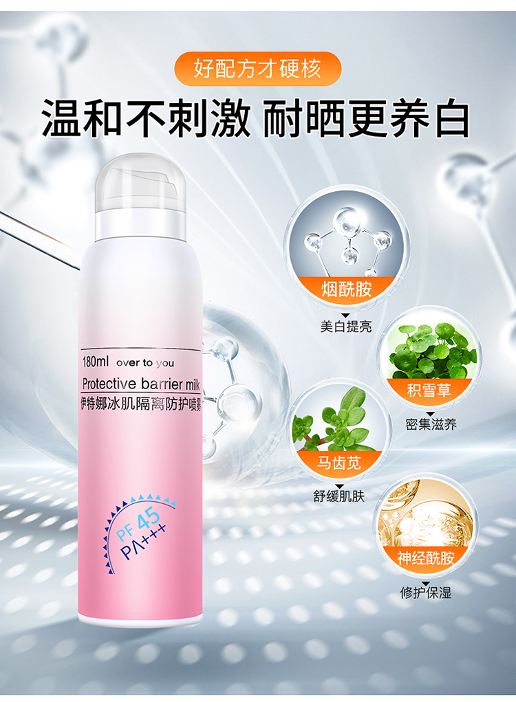 【伊特娜】一款能同时满足防晒+补水+美白提亮+定妆的喷雾特别神奇,喷一喷抹一抹就白了不仅防晒,美白效果很好。